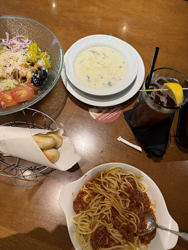 Ā Ā Ā Read moreIve been a loyal customer to this Olive Garden for years, and Iāve never had a bad experience until now I came in with my very elderly mother and we were sat with Anastatia. I only know her name because of her name tag because she did not introduce herself and went straight into asking what we wanted to drink. We waited for 10 mins just for our drinks and only had a single refill the entire time, which we had to request. While we waited, we were sat amongst multiple dirty tables with piles of dishes and trash. After what felt like forever she finally asked for our order. My mother, who requires a gluten free diet, asked Anastatia which items are gluten free. She responded by showing us the GF menu on the tables tablet, however, my mother requested for a physical menu. Anastasia proceeded to look annoyed and walked off without a word and returned with a crumpled up GF menu that had been clearly used. After what felt like forever, we finally received our two entrees, which looked like it had been sitting and dried out. We requested extra sauce, to which she responded by saying the pasta already had the correct serving size of sauce and walked off. We had to call over another waitress to grab us some sauce. She never came to check up on us after dropping off the food, and after finshing we wanted to cash out but Anastatia was no where in sight. I finally got up after about half an hour of waiting and saw her sitting in the lobby up front just chatting with the hosts. It was a slow afternoon and there werenāt many tables in the restaurant, so Iām having a difficult time understanding how her service was so slow.