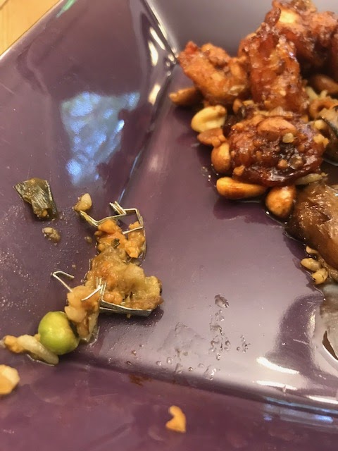 He ordered the SWEET & SOUR CHICKEN (Sweet & sour sauce, pineapple, onion, bell pepper) which came with a small bowl of rice. He very much enjoyed it.