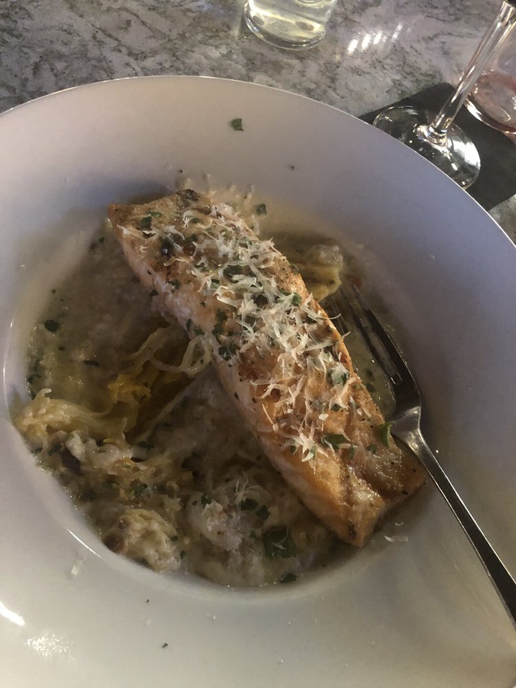 (She elected not to have the pancetta slice on top because she 'doesn't like bacon'. I think the salty/fatty addition of the pancetta would have been wonderful and very likely what the chef intended when creating the dish. I'll order it next time, to see if I am right.)