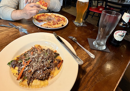 The food: We enjoyed the Calamari, garlic bread, Bolognese and Carbonara. Even order a Carne Amore pizza to go so we could try it later. The Calamari had a good flavor but seemed to have a LOT of little crunchy pieces mixed in. Kind of like the crunchy bits at Long John Silvers. There was a ton of breading bits left on the plate. The Carbonara was different from what I was used to but still very good. It was a little bland at first, but I threw some salt on it and the flavors popped. Maybe that's how they like to do it so people don't complain about it being too salty, IDK? The Bolognese was the star of the show. It was a perfect ratio of fresh pasta to delicious meat sauce. We had fresh parmesan and pepper added to the top (Which I would always add) and MAN was it good!!! That is a dish that will keep me coming back over and over!