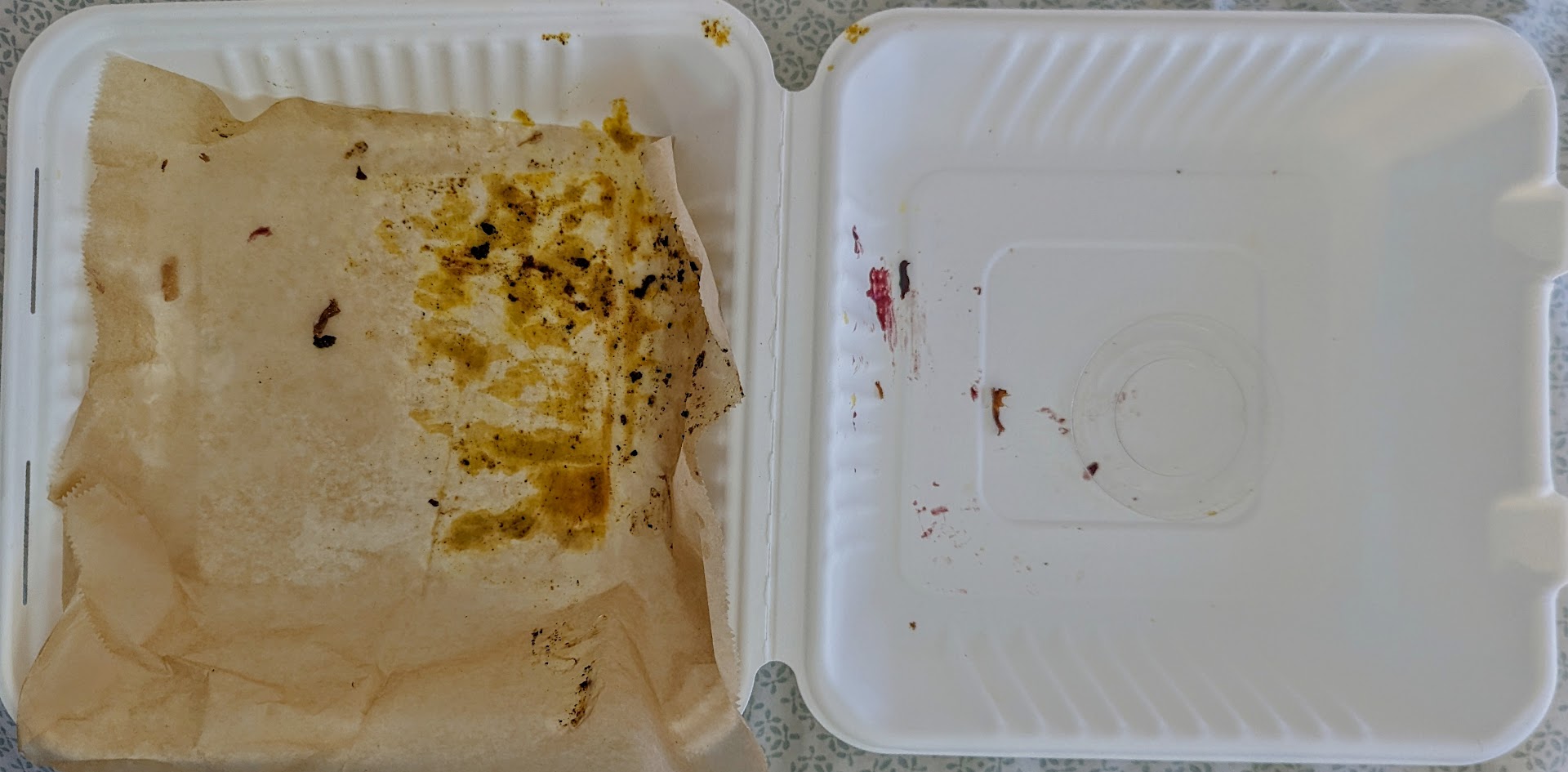 Had I known it was going to be life-changing, I would have taken a picture to memorialize this lunch, but I devoured it like a hungry lion. Instead, I present this empty take-out box, which I think says everything it...