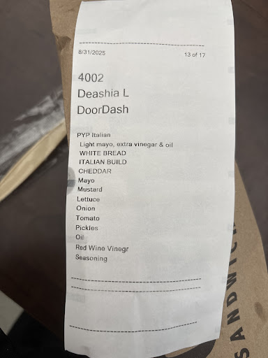 Read moreOrdered a sandwich and soup from here through DoorDash and had the WORST experience. I put in my description box for my order “light mayo, extra vinegar & oil” and received a sandwich DROWNED in mayo. I work 12 hour shifts and am unable to leave so I just called to explain my experience. The manager gets on the phone and I explained everything in a calm manner. I did say I don’t know if someone was upset or trying to be funny but I received basically a mayo sandwich. She proceeds to say “I made your sandwich. I’m a grown adult, I don’t need to be funny” in a sarcastic tone. She also kept cutting me off. She also says that I shouldn’t have put it in the description box where DoorDash literally tells me to btw, I should’ve used the option they give to put “light ingredients.” I’m not sure if she had Uber eats in mind but door dash doesn’t give you that option for their store. I will be contacting corporate and will not EVER be eating at this...