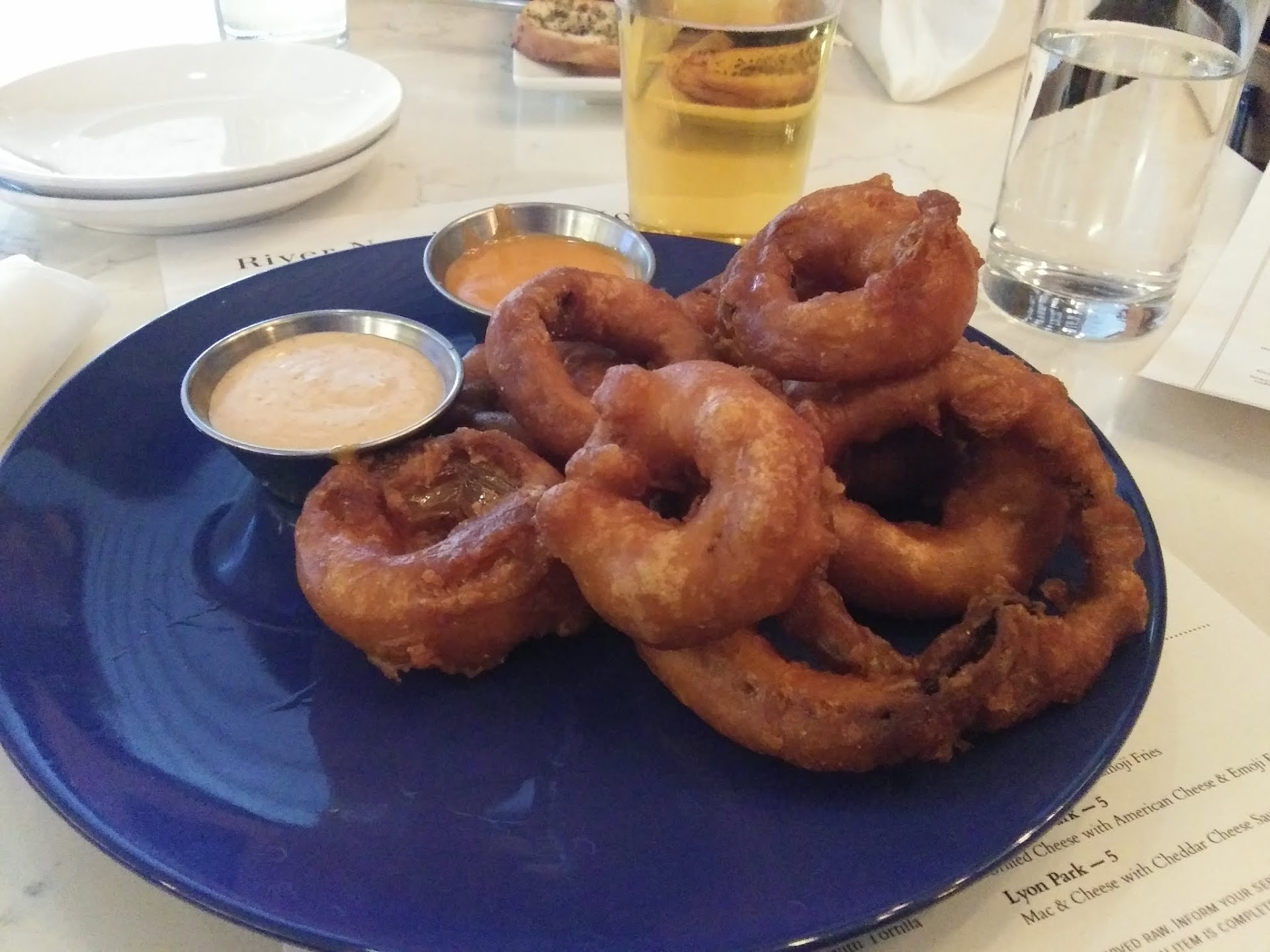 My inherent thrifty nature - some combination of culture, Dutch ancestry, and familial habits - can be exacting, and drives much of my life, including my penchant for both meal prep and happy hours. In this case, the River North Public House happy hour is a good deal, as these onion rings were a mere $4. For all the trouble in execution, I can see a theoretically good onion ring buried beneath the cinders of the batter, with a decent amount sitting on the plate.