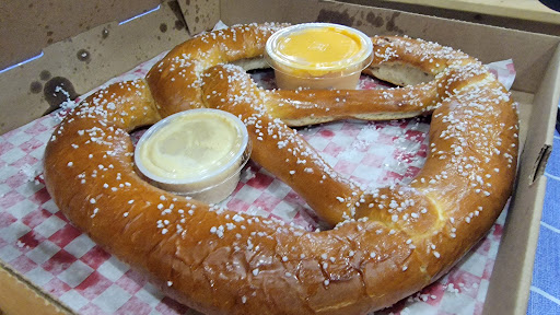 The cheese bread was good, although the red dipping sauce was t our favorite. The pretzel is HUGE and will be a sufficient appetizer for a party of 3-4. It does come massively over-salted.