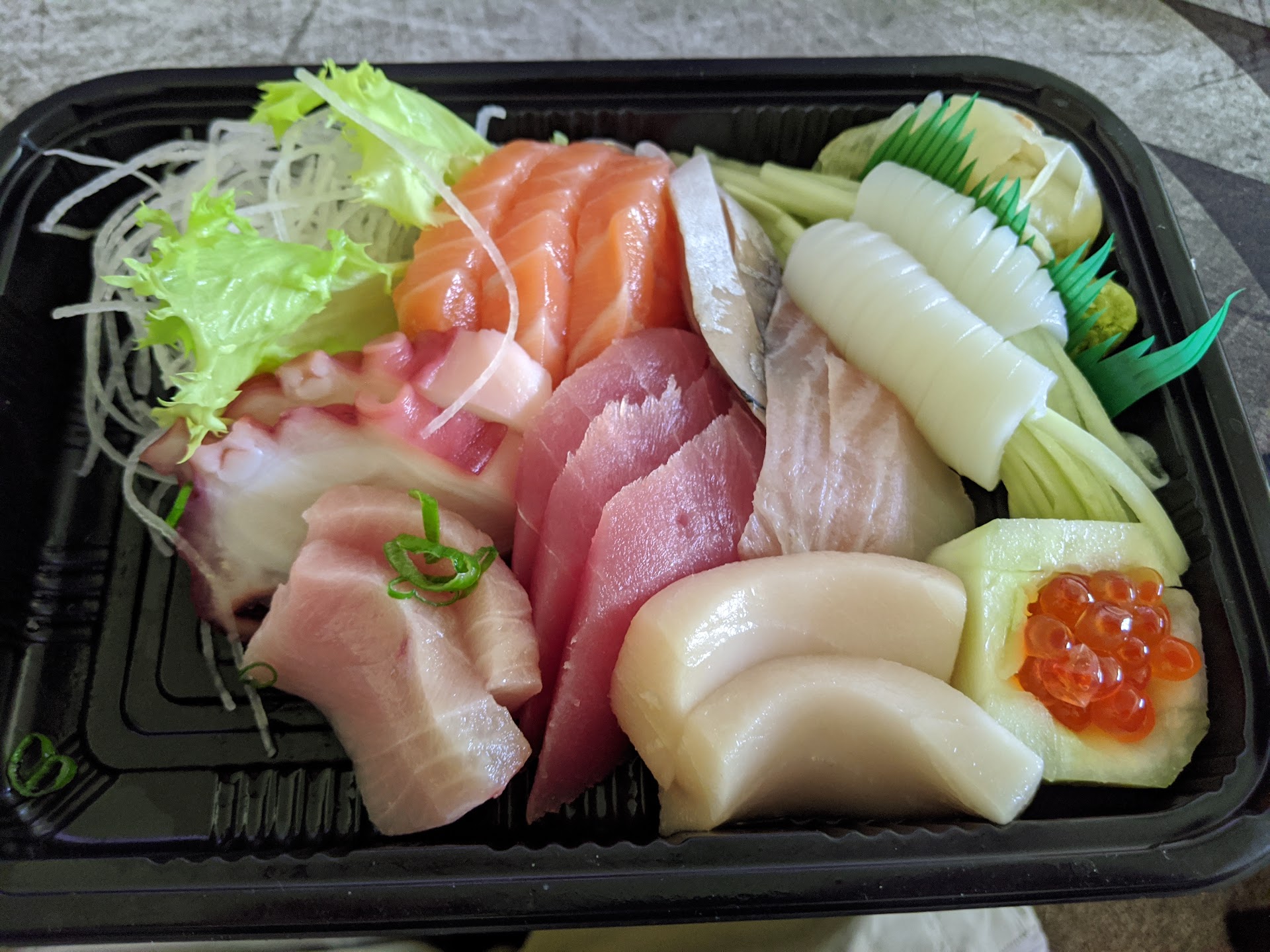 I had a Special Salmon Roll and a Green Dragon, and both were to my liking. Their portions were in good size, and their taste was just as well off. They offer a sizeable amount of options to include ramen bowls, Deep-fried sushi, fries, stir-fry, and more. I am a huge fan of sashimi, and ended up ordering 16 pieces in total of everything they had to offer; I was not disappointed.