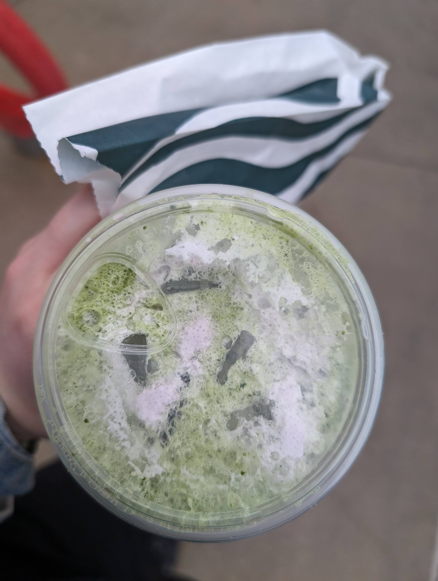 Read moreLast time I came here, I had ordered ahead in the app 15-20 minutes ahead of time, but then had to wait in-store another 20 minutes for my order to be ready. This was an early morning before a teaching job, around 7am. Today, stopped in at 8 and thankfully my pre-order was in fact ready. Unfortunately, my croissant sandwich was stale (I get this sandwich all the time and never had it tasted bad, so this is saying something. It's typically my favorite sandwich). I also ordered an iced matcha with lavender cold foam, which is a real menu option for spring this year, not something I made up or did lots of customization for. The only thing I added was one pump of sweetener. Well, I got there and it was waiting for me, but with about 6 drops - LITERAL drops - of purple foam floating on top. The photo online has at least an inch thick of foam, and I'm not saying I need it to be just like the picture, but come on people. So essentially, it was a regular matcha. Definitely not planning to visit this...