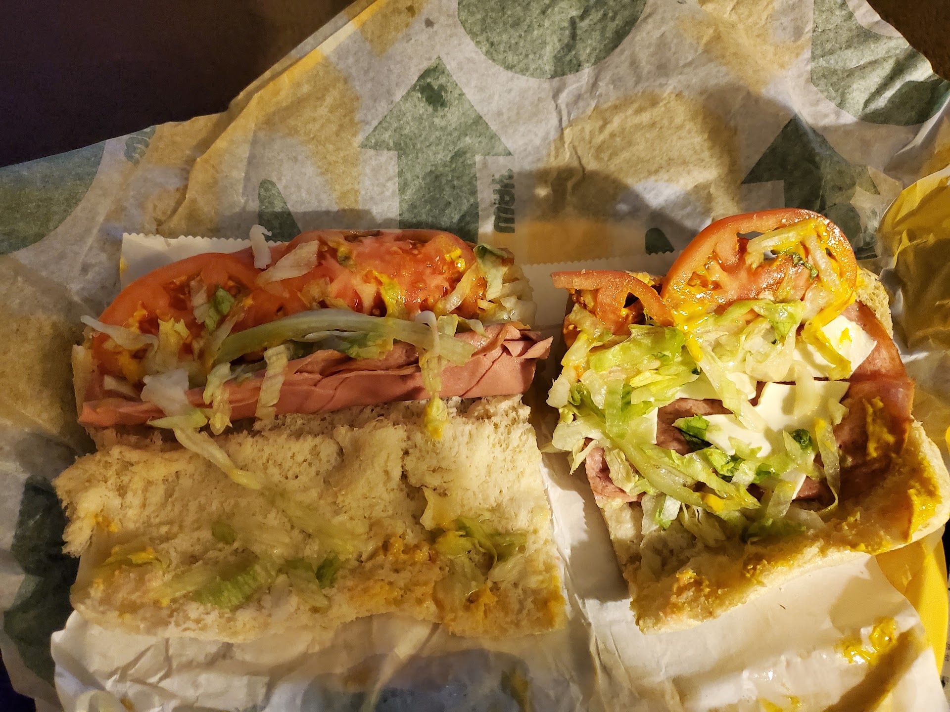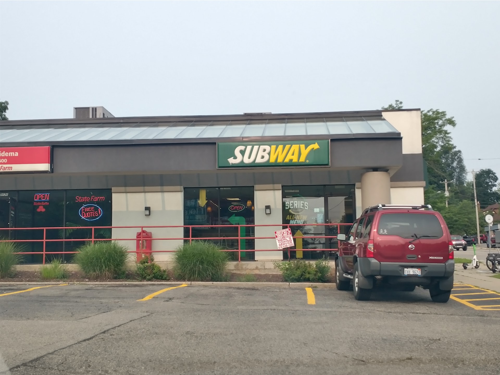 This a smaller, more crowded subway. The location is sandwiched between various other businesses inside the plaza. Not a brightly lit establishment. No drive-through.