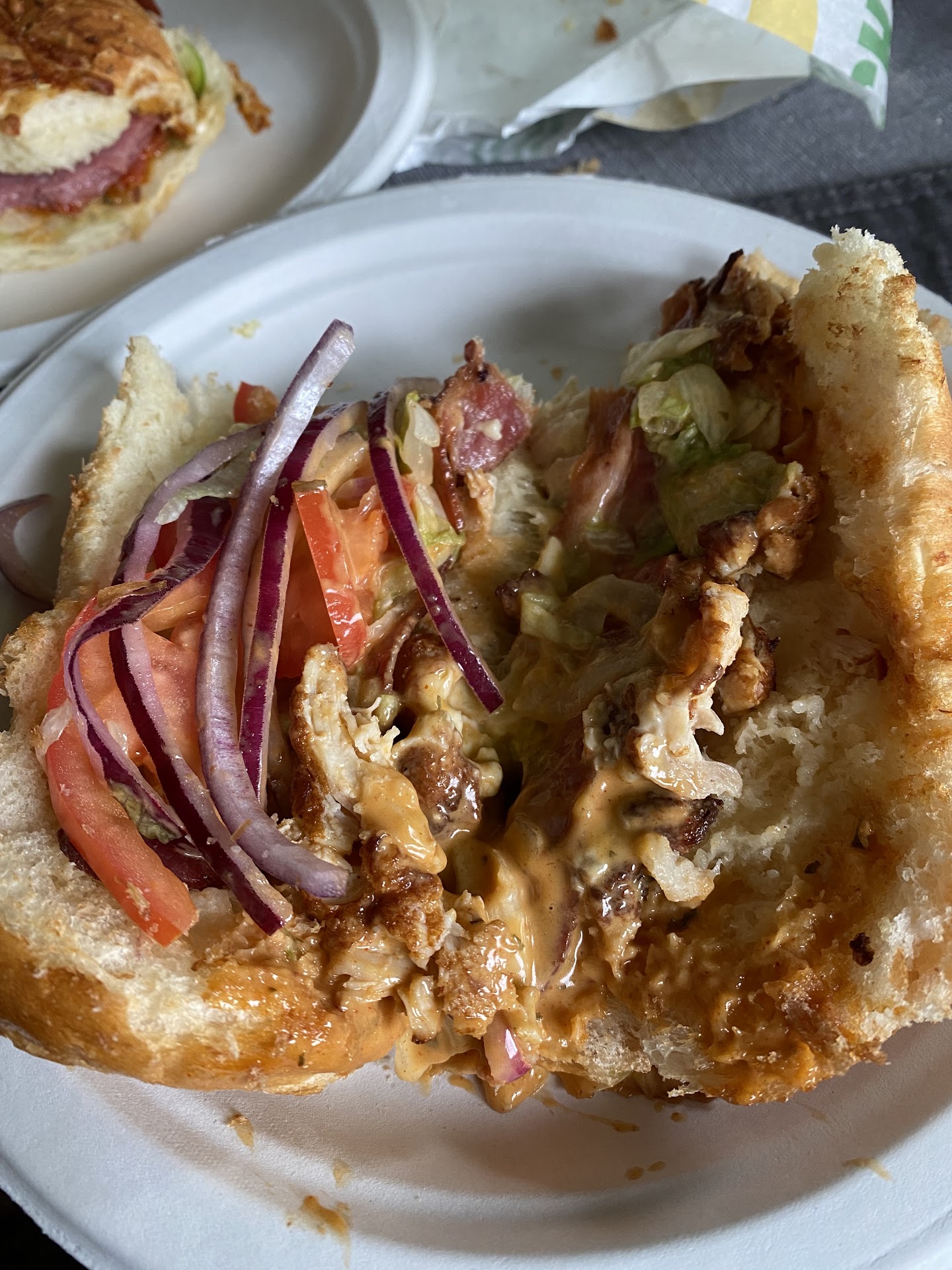We waited in line for our order to be taken by the surly, apathetic teen girls working behind the counter. The wraps I initially wanted were out, as was my backup bread choice available. Our third bread choice was the last two on hand. A sandwich shop with no bread and no wraps?! The disgusted tone and eye rolling of the employee d8d not go unnoticed. The orders were made amongst what must have been employee on employee turmoil. Neither individual spoke to one another, the first employee that took the order disappeared, leaving the second to rearrange the toppings done incompletely. The employee was asked repeatedly to speak up, as we could not hear what was being asked from behind the sneeze guard.