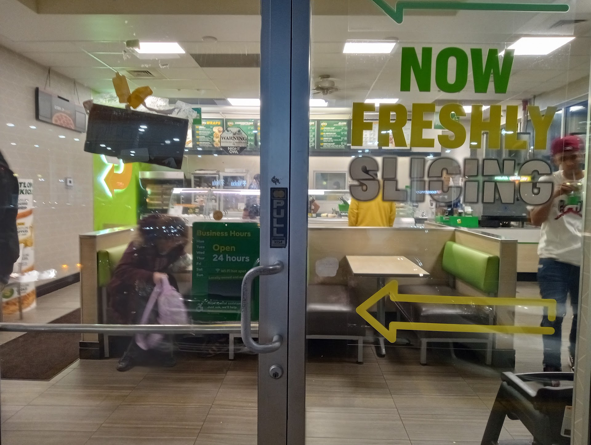 Bought a sub from here for a late night dinner. Only to come home to find out that the bread was rock hard. I've had hard breads from here before but this one takes the cake. I could've thrown it against the wall and it would've made a loud "thunk" sound. I could knock on it, it was so dried up. There's no way that the person who made the sub wouldn't have felt how hard that bread was when cutting it open. I shouldn't have to address the fact as to why the bread being hard is not good and state and argue my point as if I'm on trial. That wasn't even the worst part, I get there to get hopefully a replacement, and their doors were locked. Went to the gas station side, also locked. So I went back and knocked on their door. Mind you this subway and also the gas station connected to it is OPEN 24HRS. The 3-4 employees behind the counter waived their hands and pointed at a cutout piece of cardboard that read "shift change" hanging on by a piece of tape on the door. I lift up my bag and point to it putting my hands up to show them that I have an issue with something. They return to what they were doing and proceeded to ignore me, with a store full of customers eating, only a couple in line (right before this picture was taken). So I get my phone out to call them. Before it could ring an employee finally comes outside from the back to talk to me. I told them about the poor quality and he takes my food and brings it inside leaving me standing outside in the cold. They finally let me in, only after locking me and everyone else inside and all the other people outside of the store. The parking lot was full and people kept showing up only to be met with locked doors and "shift change" signs at a 24hr store that was FULLY staffed. I was treated as if I was the one in the wrong all for just expecting common courtesy and bread that I won't break my teeth or make me choke. The worker that was helping me just laughed and shook his head at me. I was given a footlong in replace of my 6inch which was fine, then the worker placed my sub on the counter and walked away without saying anything. One worker apologized multiple times but a customer shouldn't have to be treated that way or feel the need to defend themselves about bread being hard or the quality being poor. If you do go here, I don't recommend going when it's dark out. Bad quality with workers that won't do their job properly, let alone keep the store open and actually work. Absolutely ridiculous. Terrible customer service and an overall...