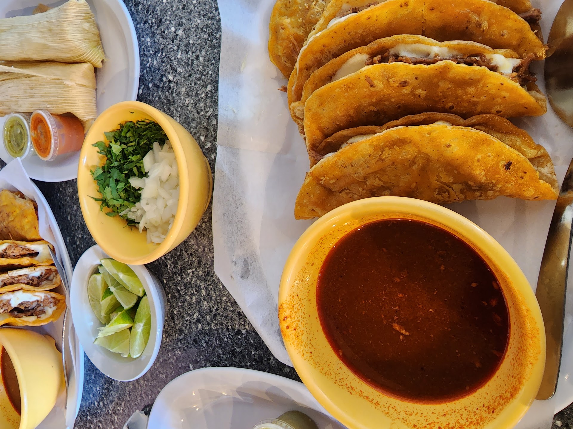 Read moreI waited months to try this place after reading all the high reviews. We kept it simple and ordered a steak taco meal, a chorizo wet burrito and tamale meal with jalapeño & cheese, and pineapple flavored tamal. First, the food was all cold and Uber Eats refused a refund bc it was still edible. The restaurant puts the responsibility on Uber Eats. Regardless, the burrito sauce tastes like a basic tomato sauce with no flavor (not even salt!) & the burrito was extremely bland with burnt chorizo. The tacos were large and overstuffed, but lacked any kind of flavor. Does not seem they use seasoning in their food. The jalapeño cheese tamale tasted like hard corn tortillas and had a tiny piece of jalapeño and what appeared to be no cheese. And the beans & rice was definitely old. Absolutely disgusting. The star of the entire show was the pineapple tamale. That thing was amazing tasting, but very dry and overcooked. I wonder, does all this food sit under a heater until ordered? It surely tastes like it. Yikes. Skip this spot and go to Cinco de Mayo DT location. 100 times better tasting food and when there is a problem, they fix it regardless of how it...