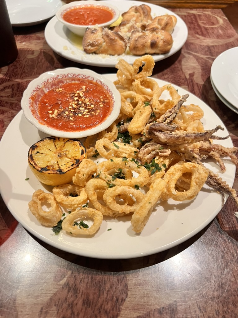 We started off with some fantastic appetizersâfried octopus and pizza bread knots. The octopus was perfectly cooked, tender with a nice crispy finish, and the pizza bread knots were a hitâwarm, fresh, and loaded with flavor.