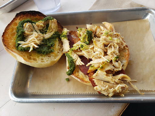 We ordered the Mensch, scrambled eggs, side of potatoes, side of smoked salmon, and side of chicken; (eggs were slightly undercooked for a scramble, heavy on the salt for the potatoes, chicken tasted like canned chicken with extra salt added to it, fish is raw [though very lightly smoked]; however the cheese compote and the housemade bread are the star of this dish)