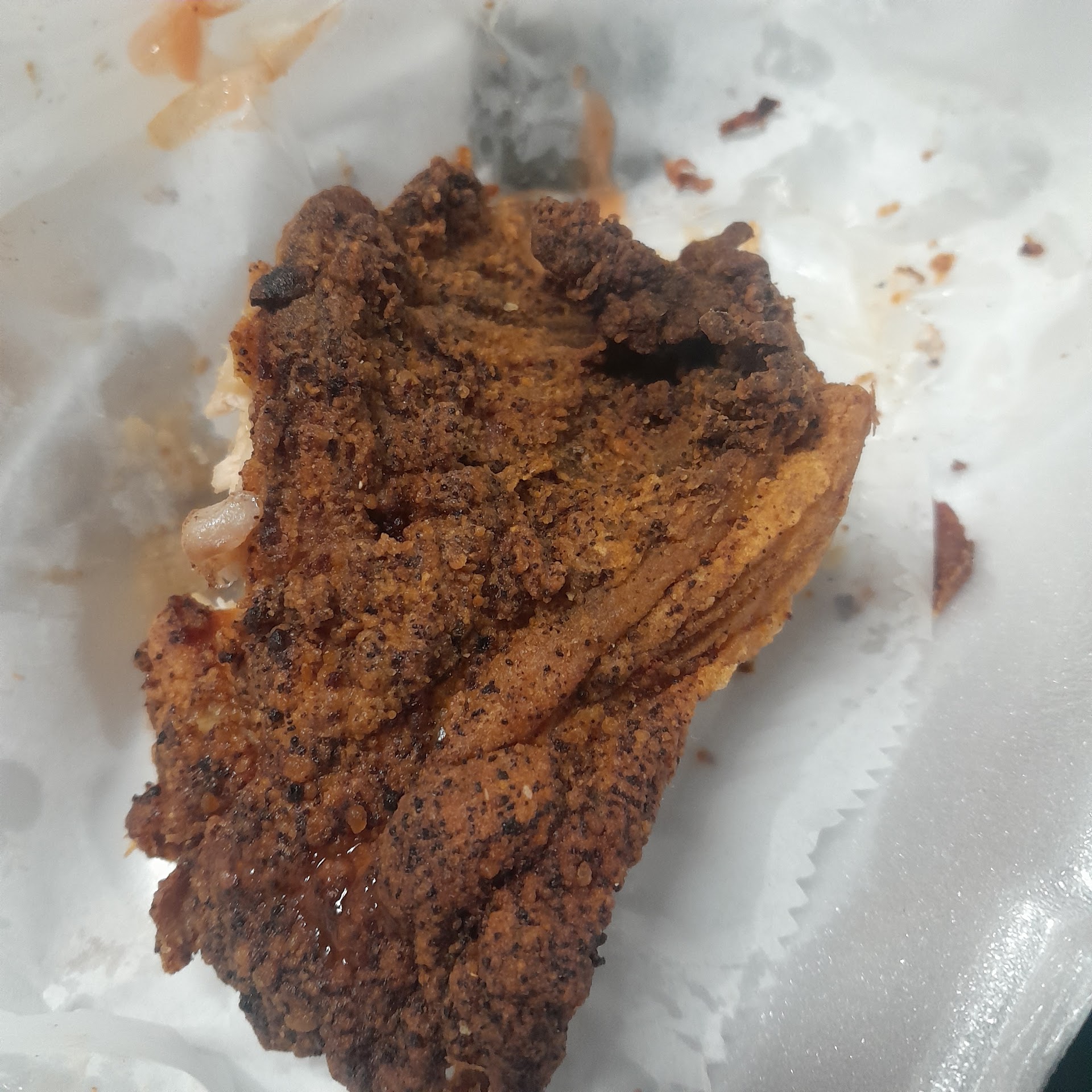 Food was disappointing for the most part. Catfish was good; very large fillets and cooked perfect but that's where it ended. The mac and Cheese seemed old and had a lot of oil in it; A LOT. I had one bite. Mashed Potatoes were made from real potatoes but the gravy was...odd. Didn't care for it much but I did eat them. The deep fried pork chop was a real let down. It looked like a pig ear I buy for my dog at the pet store and it tasted worse than it looked. I threw it in the garbage after 1 bite.