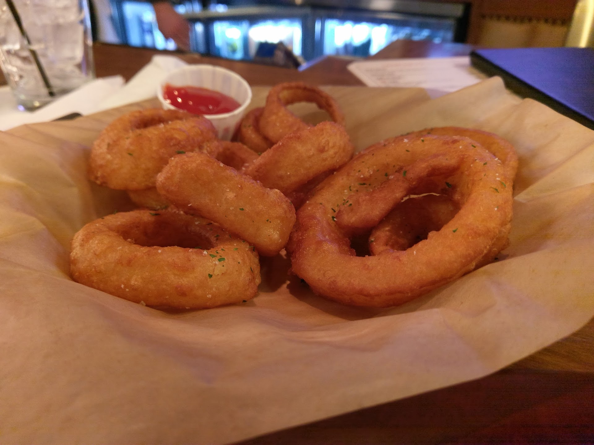 I cannot vouch for how the ketchup may or may not have affected the taste, as I refused to touch it. The thought of ketchup touching the glory of an onion ring makes me shudder, and weep for the poor souls this horror has been delivered to prior to my arrival.