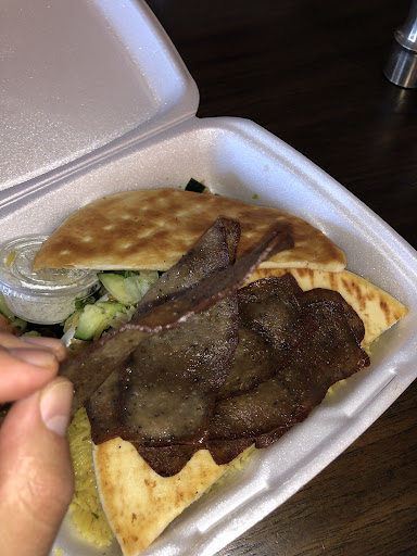 But I should have known after seeing the cans of meat in their attached mini mart that they had no idea about quality ingredients. I gave the chicken Shawarma wrap a try. After one bite of that dog food meat wrapped in oily flatbread, I knew I was in for an experience. The only veggies included in the wrap were soggy, intensely vinegar flavored pickles. I only made it 1/3 of the way through the wrap before I had tap out.