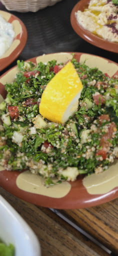 Read moreThis place was clean, spacious and nice and cool for a summer dinner The host was very nice. She explained everything and was patient. The Samosas were so good, they had a lot of flavor and just a little bit of spice that outer part was crunchy. The sauces were amazing for the appetizers. We had sampler platter that had the potato salad and the different hummuses, and each one was equally good. Then the meat came out. The meat was so moist. We had chicken and steak, and then we had beef shawarma and chicken shawarma, it was amazing. The grape leaves were good. They were a little bit vinegary, then normal, but they were still good they had this cooler full of drinks, and there was this clear drink that had a red label that tasted like cherry and it was really good this place definitely set the bar high for mediterranean food. I would highly recommend this place for a birthday dinner or any dinner for that matter. We definitely...
