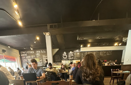 Read moreStauf's is one of my favorite coffee shops in Columbus! There are so many great options of food and drinks to choose from. They are accommodating to people with dietary restrictions as they have alternative milk options available and vegetarian and gluten free options. Physically, there is a parking lot directly behind Stauf's that connects through to the front of the building and the path is completely flat, making it accessible. There are also some parking spots in front of Staufs on the street and ramps available to get onto the sidewalk. There is a slight incline to get into the through the door, but there is a ramp to get inside. The doorway and walkways between tables can be tight, which makes the space difficulty to navigate if an individual is using a wheelchair, crutches, walker, cane, or another form of assistance to move about the space. The menu is posted behind the counter in large font. The staff at Stauf's are always kind and happy to help if a customer would need help reading the menu or getting their drink or another item. While the space does present some potential accessibility issues, the staff are very kind and would do their best to create accommodations. I highly recommend Stauf's...