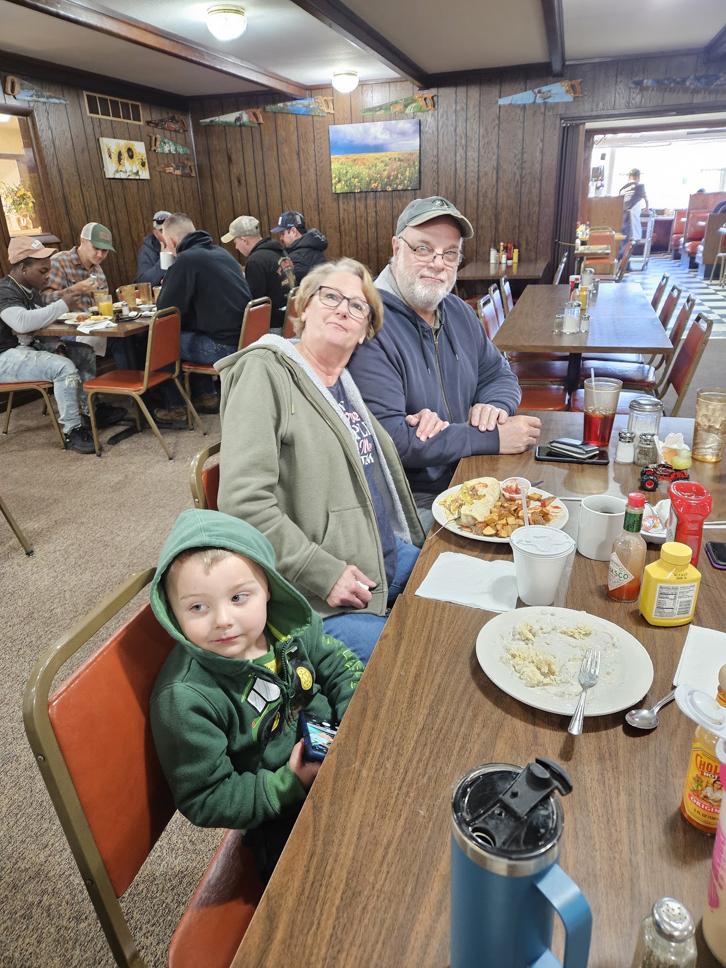 We enjoyed a hearty breakfast. Although we likely eat rather differently than most eastern Kansas folks, and probably think divergently politically, Stacy's is a place, like when in Rome, you do as the Romans; we ate the standard fare of eggs, and bacon, hash browns, and pancakes at reasonable prices. I seem to recall biscuits and gravy and a wonderful cinnamon roll we took along for the road. We noticed a lot of people must call in orders as well, because several came in for breakfasts all bagged up.