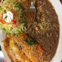 We made a sudden decision to try this place out after several of the kids I work with through the school had recommended it. From the outside it doesn't look 'amazing' or fancy but when I want authentic food I am rarely impressed by the outside of the place. It was a Wednesday night and early so the place was empty. Service was quick and friendly. I ordered a lime margarita on the rocks (and the server asked all the right questions) which came with this delectable chili limon salt on the rim. We ordered the beef nachos appetizer and hubby ordered the combo dinner which included the chili relleno. I ordered the enchilada trio. I also ordered the small guacamole and their spicy salsa. The standard red salsa was good, maybe not spectacular but the fresh chunks of veggies in it made up for any lack of heat. The guacamole had chunks of tomato and onion and fresh cilantro on top and was chunky and cool. The spicy green tomatillo salsa was divine. A slight salty kick with a heat that built without overpowering the flavor of the peppers and tomatillo's. I would order bottles of this! The beef nachos were filling but could have used a little more beef in comparison to the queso but it was still very good. So good that we had limited room left for our actual dinners! We did sample everything though. The beans tasted homey with a nice salty pork kick. The rice was a simple and good side dish to soak up some sauce. We shared bites of all the main dishes and the only let down was the chili relleno. Normally this is a complete deal breaker for me but everything else was so fantastic that I can't really knock it. Maybe it was just a bad batch of batter. It tasted faintly 'stale' which I usually associate with frozen ones but past the batter the chili and filling seemed fairly tasty.