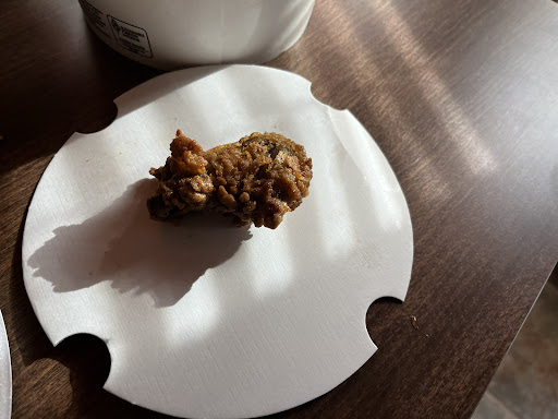 When I got home the extra crispy chicken I ordered was so soggy that the skin was falling off. The Mac and cheese looked burnt like it was sitting under a heat lamp for hours. The popcorn chicken was inedible it had been cooked so long and the popcorn chicken in the famous brown tasted burnt like the grease hadnāt been changed in weeks. The biscuits were hard as rocks they could have been used for hockey pucks.