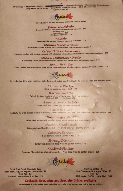 If I could give this place zero stars, I would. Unfortunately, to be able to warn others, I have to at least give it a star. We were passing through Grangeville on our way to go camping and upon entering the restaurant we were not greeted. The waitresses made eye contact several times without saying anything to us. The sign right at the entrance said to seat ourselves. We looked throughout the restaurant and the only available tables were dirty. We were hungry and didn’t want to try to find anywhere else to eat in town since the town is small and restaurants are extremely scarce, so we chose to sit at a dirty table. We waited for 10 min and were eventually told by a waitress that she’d be with us in a minute. We waited another 10 min until a party of two walked in, seated themselves, and were immediately greeted and brought menus. We immediately left after that. Apparently, they only want local money and don’t like people who are not local. Hopefully people who are from out of town are treated better than we were, if you choose to eat here. Good luck at this...