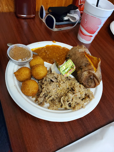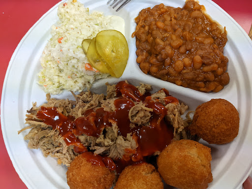 Dropped in to check out this Hole In The Wall BBQ restaurant. Seat yourself says the sign, so I did. I was promptly waited on and the food to table time was not long. The salad was very good. I ordered the Combo plate. The ribs were good but not a lot of meat on them. I couldn't taste any smoked flavor in the pork. The Baked beans and okra were good. The chicken was very good and very tender. The sauce they brought from the kitchen was delicious. I ordered peach cobbler as well with ice cream. The peaches in the cobbler were excellent. Like fresh picked and not cooked to death. I would return here to sample some brisket next time. Hopefully they smoke the pork...