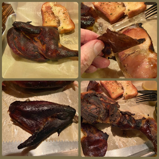 If youāve got ample time to squander & desire to increase your carbon intake, make a beeline for this place. Been here before & experienced so-so service & usually good food, but they diligently endeavored to outdo themselves this time with world record poor service & food. Our visits now convince me that their positive reviews must be from bots, employees, & family, or possibly aliens (or perhaps they have a āfirst teamā weāve never seen, as weāve been unfortunate enough to keep getting the third string). We arrived to an empty waiting area, & were told the wait would be 15-20 minutes; 27 minutes later, we were seated ⦠āpraps that was an omen that we shouldāve left (?). After they took orders, they likely huddled in back and decided to pretend we werenāt there, & so began ignoring us. While a nearby table that arrived after us was getting oodles of attention, & since she hadnāt checked on us, updated us, or refilled our empty drinks (one gets thirsty when waiting for long periods without lubrication in such a desert!), we had to flag down the waitress as she sauntered by ignoring us. On another of her trips to the nearby table, 35 minutes after we ordered, we flagged her down to seek the status of our dinner -- seeing the table that arrived after us was served & happily munchinā away. She eventually came back to say they were working on our order, but the hamburger was taking a long time (Say whaaat? A hamburger struggle in a meat restaurant?). Then 45 minutes after our order was placed & 15 minutes after the nearby table had been served, she came by and said they only had one baked potato available, & weād have to choose which of the two of us that had ordered one would take it & who would choose another side order (Say whaaaat? A meat restaurant without potatoes at 6:30 pm on a Tuesday night? In that 45 minutes we could have gone to a store and bought one for them to microwave for us! And why did it take 45 minutes to tell us?). Though we considered choosing between pistols & swords to duel over that last potato, one of us chose another side order. Well, 56 minutes after we ordered, our dinners finally arrived ā unfortunately. The lone hamburger was overcooked, as were other items. The BBQ chicken (see photos) was quite burnt, skin tougher than a tarp; we flagged down the waitress & asked for a REAL knife to cut it, as they only provide plastic forks and knives. She replied they donāt have real knives (Say whaaat? No knives in a meat restaurant?). Well, we got our anaerobic exercise struggling with the chicken to tear it apart to find meat (please donāt tell anyone the chicken won that bout) ā¦much of it far too tough & dry to eat, with the wing totally burnt down to an inedible crispy critter. After the manager noticed our unhappiness, she tried to joke with us, & even offered a slight price reduction (we paid full price anyway). The crowning moment of the night came as we were leaving: a āladyā from the nearby table approached us and said weād been wrong & rude to the waitress. Say whaaat? For inquiring about refills? For inquiring on the status of our order? For questioning about the baked potato? For asking for a knife? No! Turns out the table the waitress was devoting so much time to had her grandparents, & āsplains why they got food so quickly with continuous attention as we got zilch! Having the hilarious audacity to approach us blazingly ignorant of the facts, itās also apparent they were coddling their snowflake versus telling her how to be a good waitress, as she was obviously whining to them about how mean were to go to a restaurant & expect drinks, status of our order, to get what we ordered, & to have ability to cut meat. How mean of us, how nice of her to revise & inflate that to her grandparents, & for them to blindly believe it. As someone whose first job was in a restaurant, and who later had 12 restaurants & 4 cafeterias under him, Iād have a team meeting to talk customer service -- & the fine art of controlling fire to cook versus...