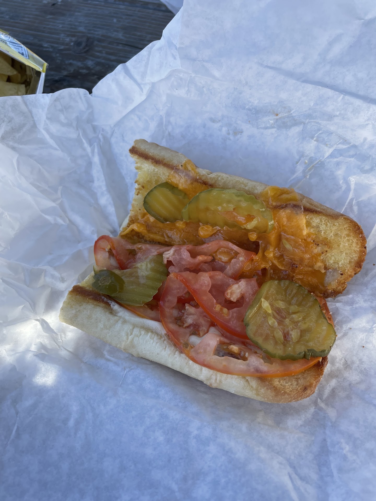 Read moreI hope they succeed. The place is very clean. We went for lunch, mid week. The inside is small and loud from some blowers, it was also a bit too cool so we sat outside, where it was loud from traffic. There is no designated trash can outside and no napkins on the outdoor tables. There were no vegetarian sandwiches on the menu so I ordered the kids menu grilled cheese, adding pickles and tomato. There is not a bread option so it came on a hoagie, which was just too much bread in the mouth. My friend ordered the chicken Caesar wrap, but it came out as a sandwich on the hoagie. He said it was âalrightâ. Both sandwiches were unremarkable. I had to make three trips back inside for the side of mustard I had asked for, and for napkins and to throw away the wrappers. The girl making the food was all smiles. The girl taking the orders was hesitant, shy, and seemed overwhelmed. Again, itâs very clean and I hope...