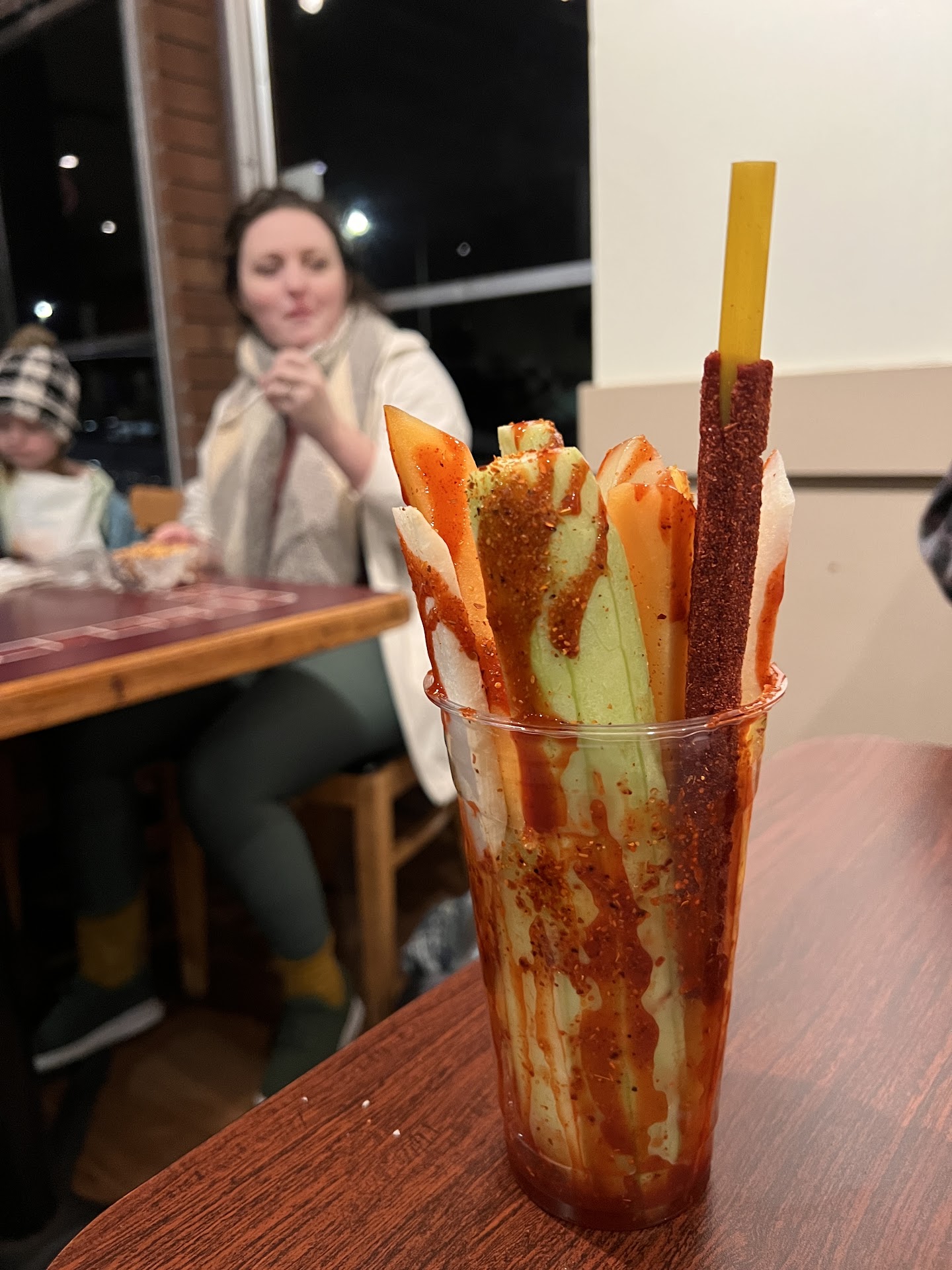 We moved on to order some dinner. About 10 minutes in, my 5-year-old needed to use the restroom. He was twisting his legs, and bouncing up and down because he couldn’t hold it. The woman who runs the postre side wouldn’t let him use the restroom because she was cleaning them. Side note: the chemical smell was so strong that I stunk up the entire building and I came home smelling like cleaner for an hour before the smell finally subsided. That’s probably not healthy.. Anyway, she wouldn’t let this poor kid use the toilet despite his emergent situation. So my husband had to take him outside in the 30 degree winter weather to pee on a tree.