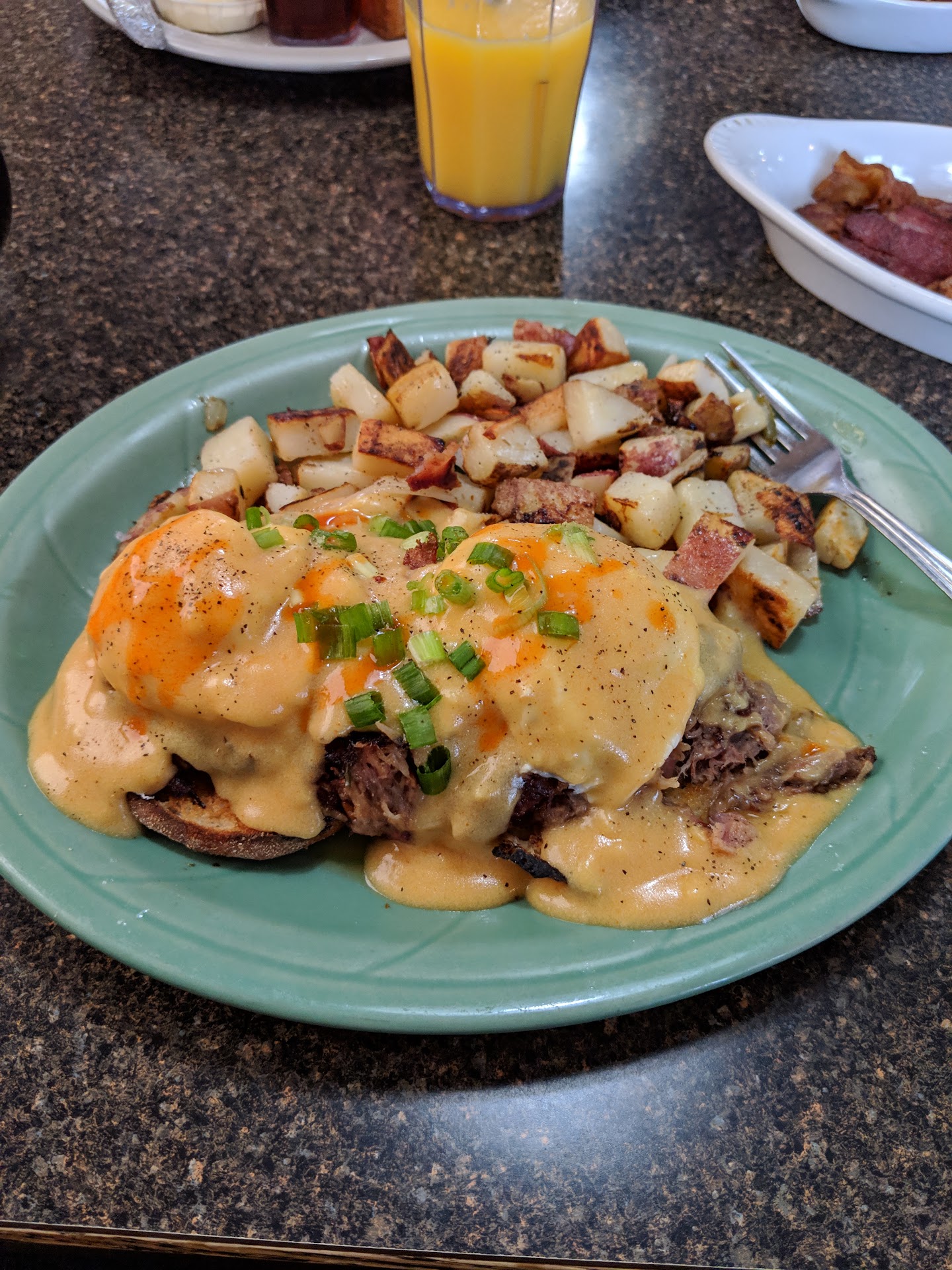 So first time going and I had the Eggs Benedict with smoked salmon. The Egg was cooked perfectly and the english muffin and micro greens where good as well. The Hollandaise sauce was good but oh there was way to much. They treated it like it was biskets and gravy and went way over board. Even once I removed a lot of it there was still way to much. I would suggest getting it on the side that way you can add as much or little as you want. On to the Smoked salmon. It was a very light smoke and really you could only pick up on the smoke flavor on the edge of the meat.