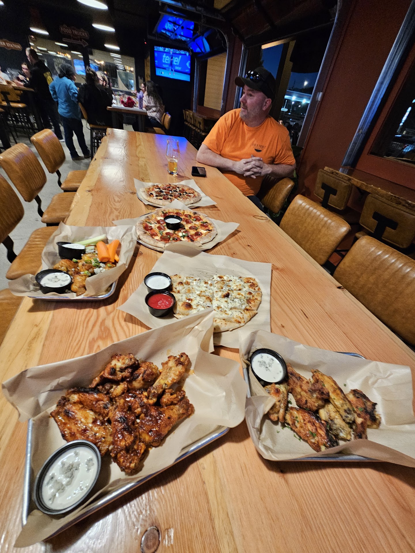Read moreInsane Taphouse, unlike any other growler guys out there. This growler Guys is a stand-alone location that it massive and has its own large parking lot. Once inside, there is a ton of seating and a massive bar with over 50 draft beers, ciders, etc, on tap. There is also a cozy little whiskey bar nestled just beyond the main bar for those who are looking for a little extra sophisticated kick. There are two different patio options, each offering their own unique atmosphere. There are fire pits, couches, loungers, chairs, etc. We saw everyone from locals, construction workers, families, industry workers, and more. They had a sushi food truck outside, but we tried their in-house wood fire pizza and their wings, which were absolutely amazing. They had other classics like cheese sticks, pretzels, and more! They are one of the only locations in town that are open late and 7 days a week. Seems to be the...