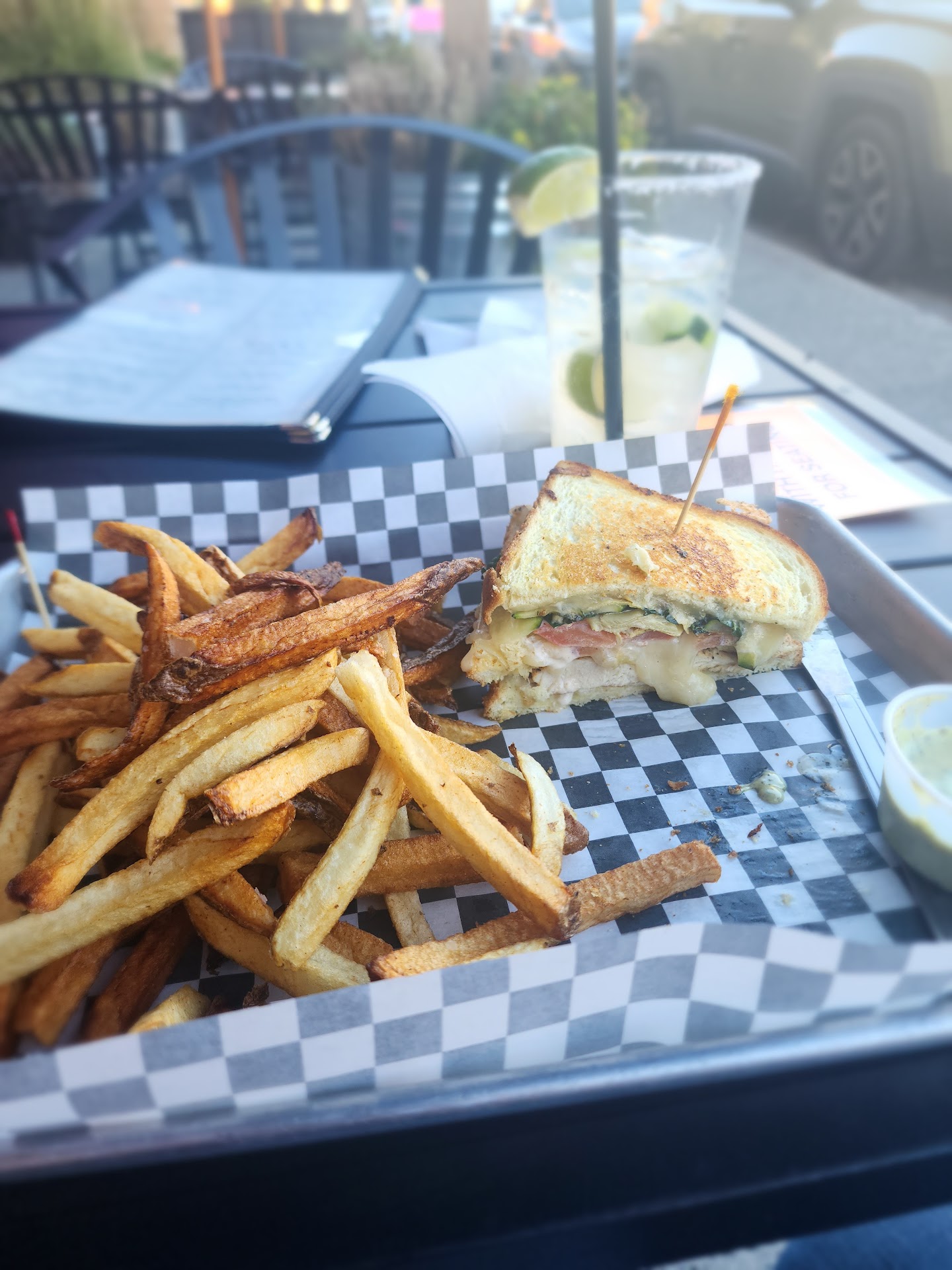 Read moreFirst time in. We waited for awhile waiting for the hostess to show up. When she did, she was a bit snotty to a couple of ladies who did nothing to deserve that attitude. Our waitress was very stressed outâ (quick to throw a couple menus our way (like a run-by). We didnât see her for awhile but when she came back she still was in the mode of wanting to get going â ordered drinks and fries to beginâ got the drinks but no-show on the fries. Ok. When another brought our meals (very good food) we let her know about our appetizer never arrived. When we were almost finished eating, the waitress tossed fries on our table and said it was on her (nice gestureâjust so manic) when I tried to ask for more info about a drink she literally ran by and then backed up. Got the info but wowâ over working herself or something cuz we didnât notice other servers running like her. Another thing: be aware before you pay cuz there is an added fee if you pay by card that is on the bill BEFORE they know you have cash to pay⌠just be mindful. We liked the food, atmosphere but the personalities of a couple employees may need to be re-evaluated⌠We may come back but we have been to nicer businesses whose staff really work hard as well and they make you feel...