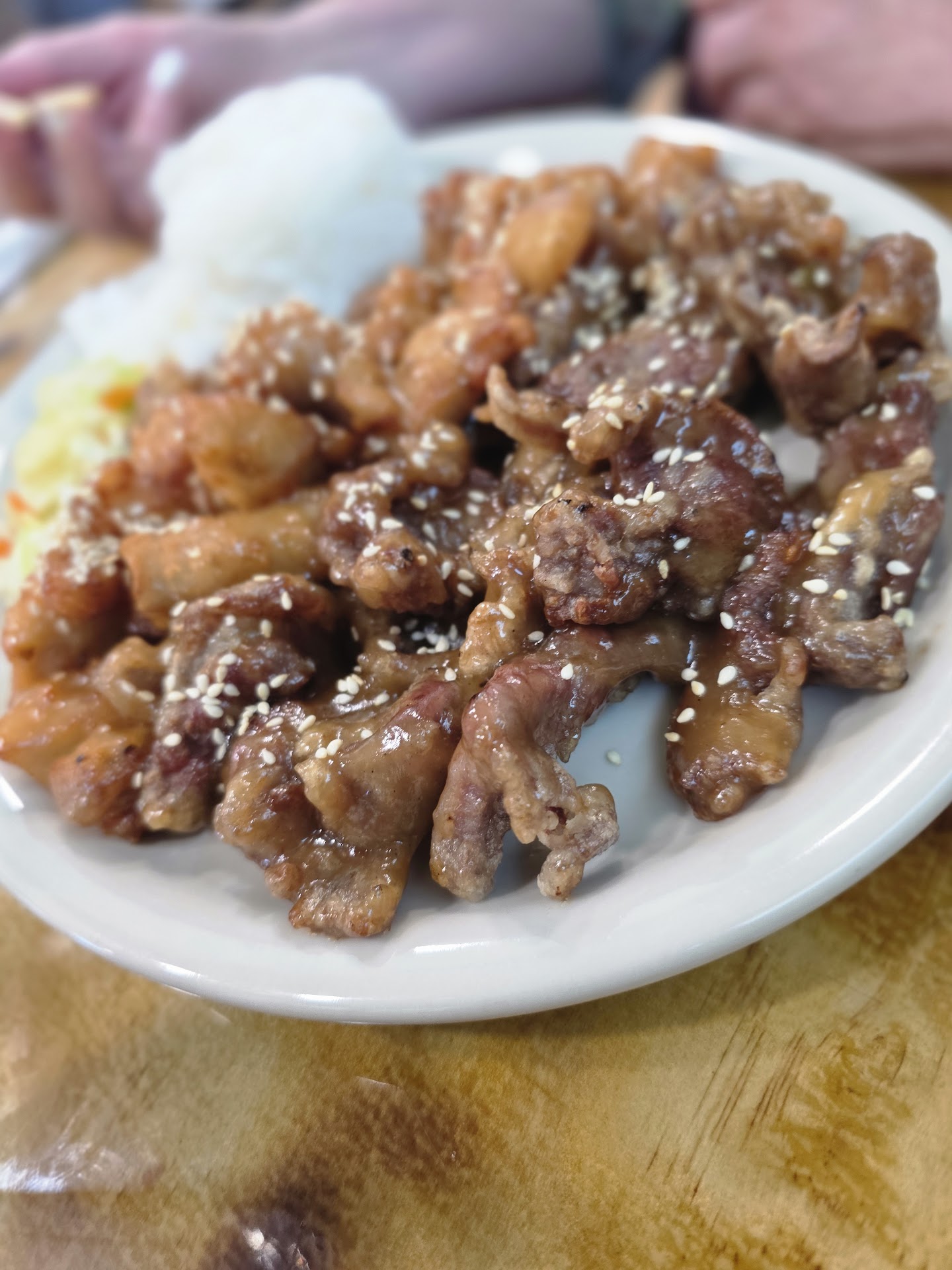 The kung pao chicken was not.... Whatever it was wasn't bad. However, it was packed with chicken. Nice white meat chicken. That was very good. I paid $2 extra to get a side of fried rice. It was definitely not worth it. It came with what they called a Chinese salad. I took one bite. It had no flavor at all just cabbage. But what would really stop me from going back was the noise. It sounded like a daycare center and I think there was only one child in there that I could see. Also there was no...