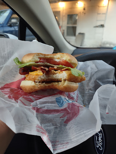 Last time; I go here a lot, or at least I used to, many times I just roll through the drive thru. After Today I will have to think twice before coming here again. I ordered a number 6 Spicy Chicken sandwich and fries combo. The chicken was way smaller than the bun, the bun seemed smaller than usual, the outside of the chicken was soggy and the chicken itself was tough and chewy, put it on a sorry stale bun with 2 micro-pieces of lettuce and a tiny dab of mayonnaise. Not only did the sandwich look and taste terrible they couldn't even be bothered to put on a slice of tomato or a reasonable amount of lettuce. We waited about 6 or 7 minutes at the window for the french fries which were served in an under filled container and were hot as hell, OK that's usually a good thing except the fries were woefully under cooked, and way over salted. At close to $7 this garbage seems very overpriced to me. Since I went through the drive thru and had other things to do, I did not go back, I wont be going back again any time...