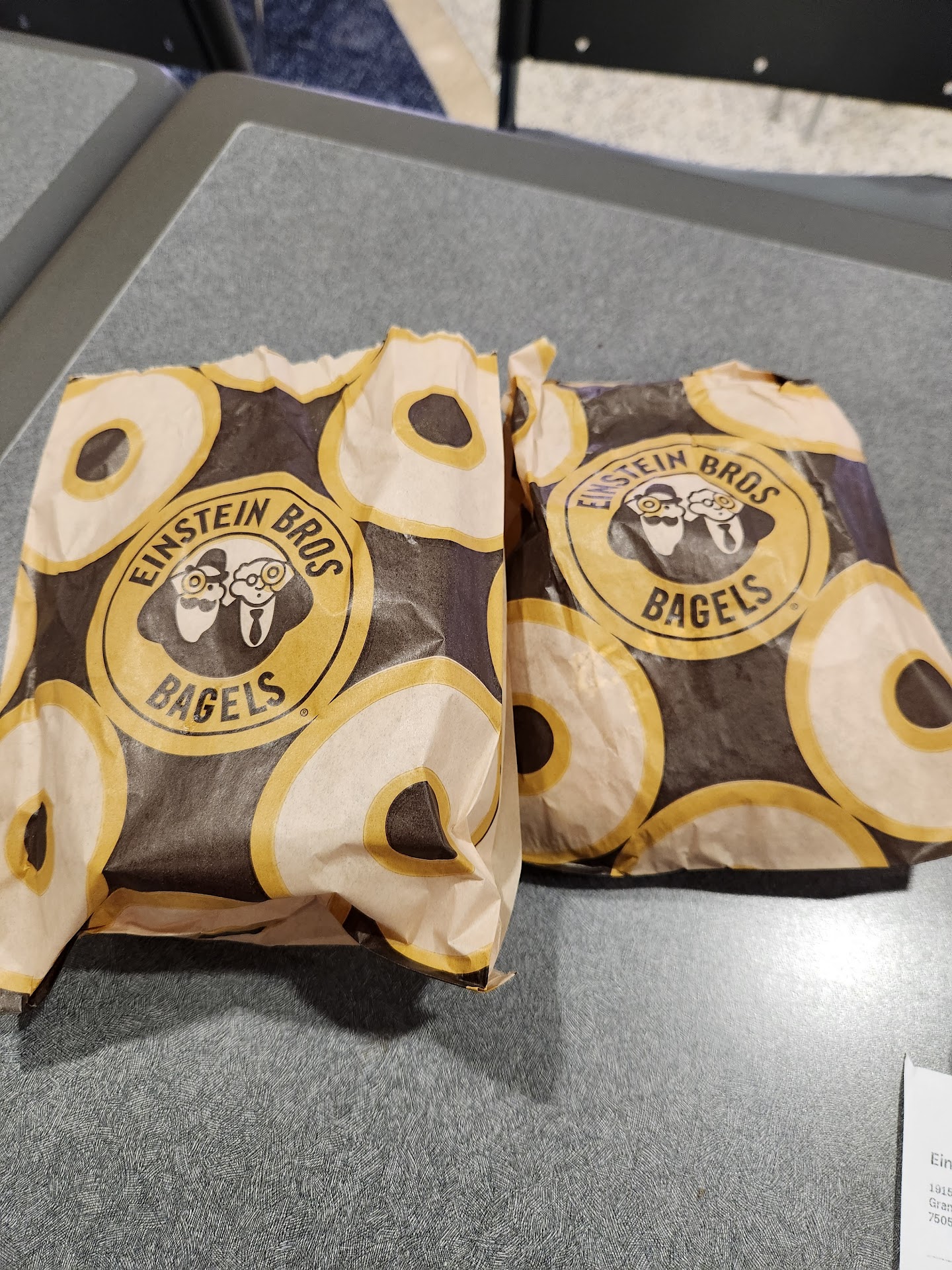 Read moreThis airport location was bustling in the early morning around 7AM. Staff looked tired, but they were efficient. I got a plain bagel with shmear (plain cream cheese). three flavored cream cheeses were out of stock. I also got a turkey sausage with 2 eggs, but you couldn't tell the difference with the one with 1 egg. The eggs are 3mm thick each and tasted airy and synthetic. Imagine taking an egg and aerating it and adding water. The texture was so soft and porous is just didn't taste or look like an egg. The sausage was also very thin, and the flavor was drowned out by the egg. The bagel had good chew and texture though. I guess $7.50 at the airport doesn't get you much. In general, the food was not impressive and not indicative of the site or staff but the general product offering. Will stop by the TGI Fridays next time for...