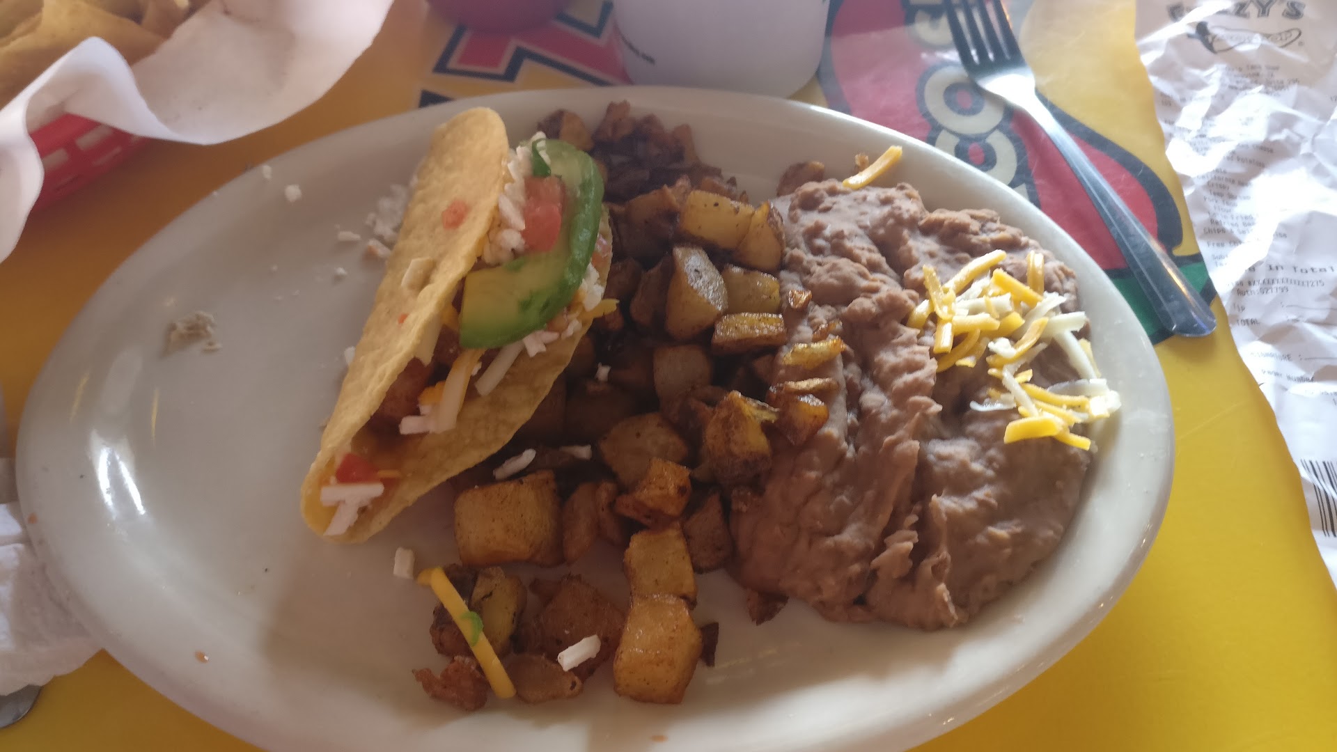 I notice on the reviews, no decent reviews for about a year.. FRANCHISE NEEDS A GOOD LOOKING AT.. SOMEONE CALLED IT THE ARMPIT OF FUZZYS.. HMM.. very accurate. The very WORST in drinks, food and service. Margaritas were most water even after taken back to have remade. Refried beans and queso so thick and not tasty. Fish Taco, let me just say had I taken a pic, you'd be wondering where the fish was also. New cali style taco had beef so hard and plain, I wondered if it was beef. Food was all cold based on the kitchen help calling out different numbers when no one came to get it, I went to ask and was told, yes.. was mine.. wrong number called several times. Thanks for the cold food kitchen staff, wasnt worth my money. You got me good. Wtth? I had tried this particular restaurant once in the past several years ago and thought surely can't be.. oh but it was.. horrible yet again. Shame on me for thinking they may have improved. This particular restaurant gives all other Fuzzys a...