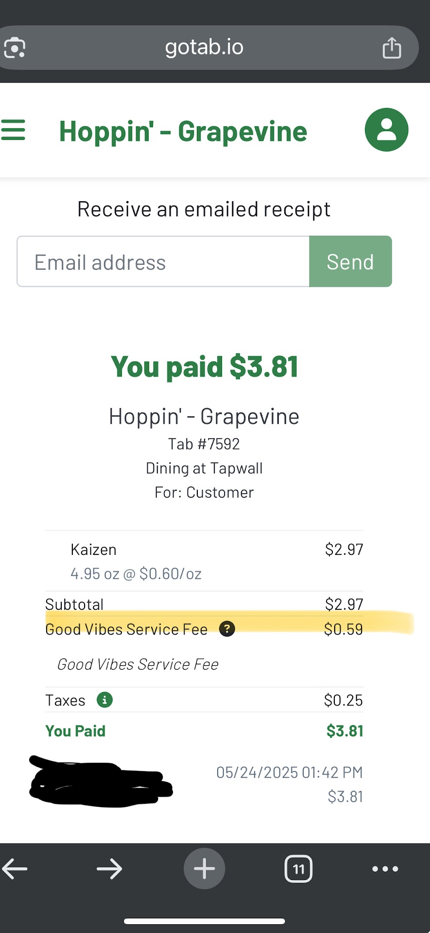 I was originally happy with the concept, but the process required to remove the required "tip" from my bill was very off-putting. Why not just add 20% to your beer prices? I asked the manager if he had been to any bar/restaurant that put a mandatory tip on his bill. He again said it was a new concept and if I didn't like it, I could choose to not come back....