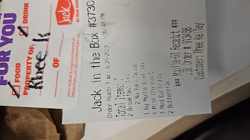 Read moreUpdate 7/31/23: Back to JIB to give them another chance. Ordered 2 tacos and 3pc cheddar poppers with a tea. As soon as I pull up to the window she hands me a bag with it looks like someone's name on it. I opened it, confirmed its not mine and gave it back. The manager walks up and says that order was through the app and has been paid for and why it had someone's name on it. Oh boy.....the cashier then gets upset with me. If looks could kill. She acted like the whole thing was my fault. I asked for taco sauce and her response is "its in there." 1 packet for 2 tacos. So I asked for another packet and some ranch. I thought she might throw them at me. The whole thing was just uncomfortable and that girl was completely rude and out of hand. On my last review JIB reached out and asked me to contact them and basically took a survey. No one actually reached out regarding the issue.