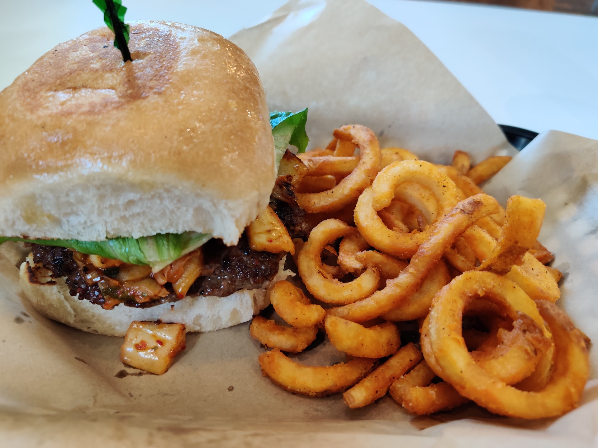 The K-Town was actually very good. The kimchee actually complimented the burger very well and blended the jalapeños in better than most normal Texan builds. the patty was well-seared and medium well. The bun took all of the punishment admirably, even better than many similar or better restaurants.