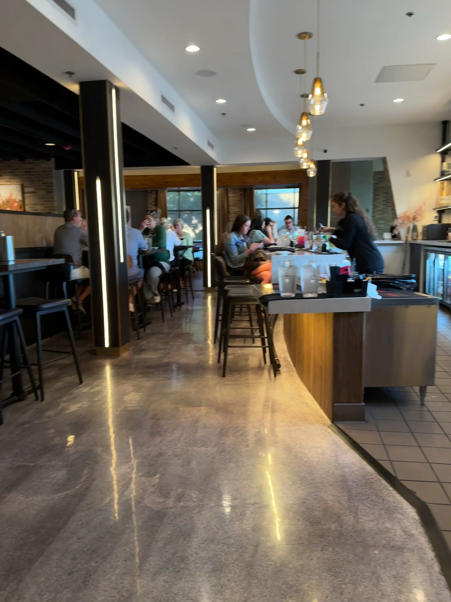 Server Mackenzie was very polite, energetic, and walked us thru all the menu options. Atmosphere was nice - very clean and brand new. Lots of pre-bussers walking the floor and clearing plates.