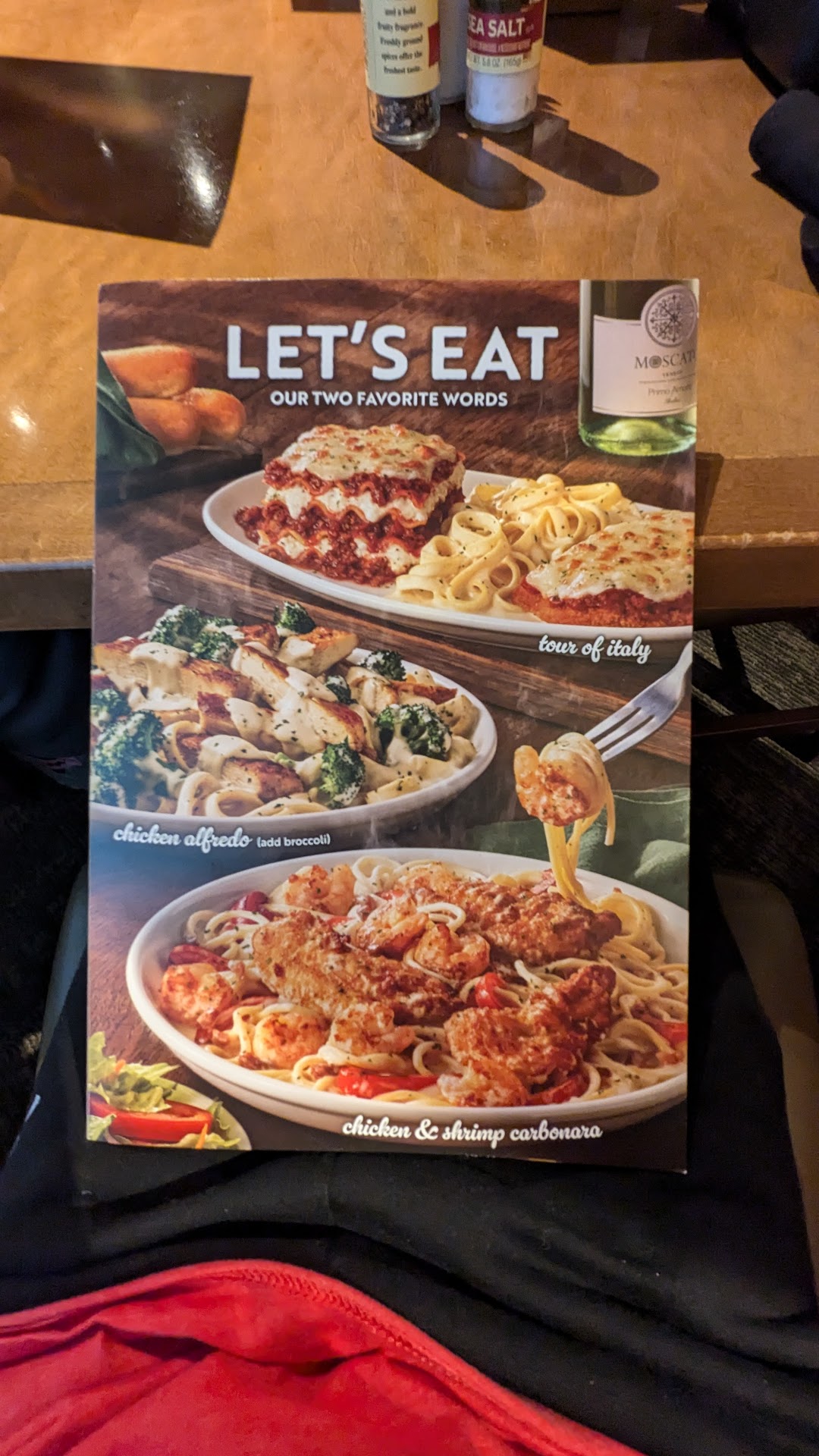 Read moreI've loved OG for years but I am not a fan of the new layout and decor of the restaurants. It takes away the appeal the old style had. That aside, I was unimpressed with this location sadly. We were sat in the very back room where there was only one other table with guests. It felt like we were away from everyone, not intentional of course, but it added to the experience. Our waiter was rushing us at first. We barely sat down and he was there to take our drink order, then quickly returned to take our food order and we hadn't been seated a minute or two. He entered my wine into the kiosk and then disappeared for a bit. Once he returned and we ordered it was quickly brought out. I am a big fan of the Steak Gorgonzola Alfredo and was ecstatic to see it brought back but was seriously disappointed in their dish. My steak pieces were great but the noodles tasted like they had freezer burn. When it was time to pay our waiter said to just pay on the kiosk because it was faster. I had a gift card and it was giving me trouble. When the waiter came by I told him and he said oh no it took it off. I was telling him it didn't because my total hasn't changed and he simply said oh it did and told us to have a good night. I calculated my total just to be sure and my total was the same so the card didn't go through. Then it got to where the kiosk would no longer work and I called the server. After several minutes he arrived, took my cards, and snapped he'd go do it manually. He then came back with my card and said he'd gotten the gift card and told me to pay the rest on the kiosk. I then asked him if he could clear it because the kiosk wasn't working. He grumpily checked it and then saw there was a problem with it so he snapped again he'd go do it manually, which is what he said the first time. After another several minutes he returned, told me how to fill out the receipt, making me feel like I'm an idiot, and then stomped away. He had been rushing us from the get go, then disappeared and we waited for drink refills and for help with the check. I'm not sure if he was having a bad night or if that is his normal, but he definitely doesn't need to be a waiter. I would not recommend this Olive Garden at all. Very disappointed and hopefully it was just a bad...