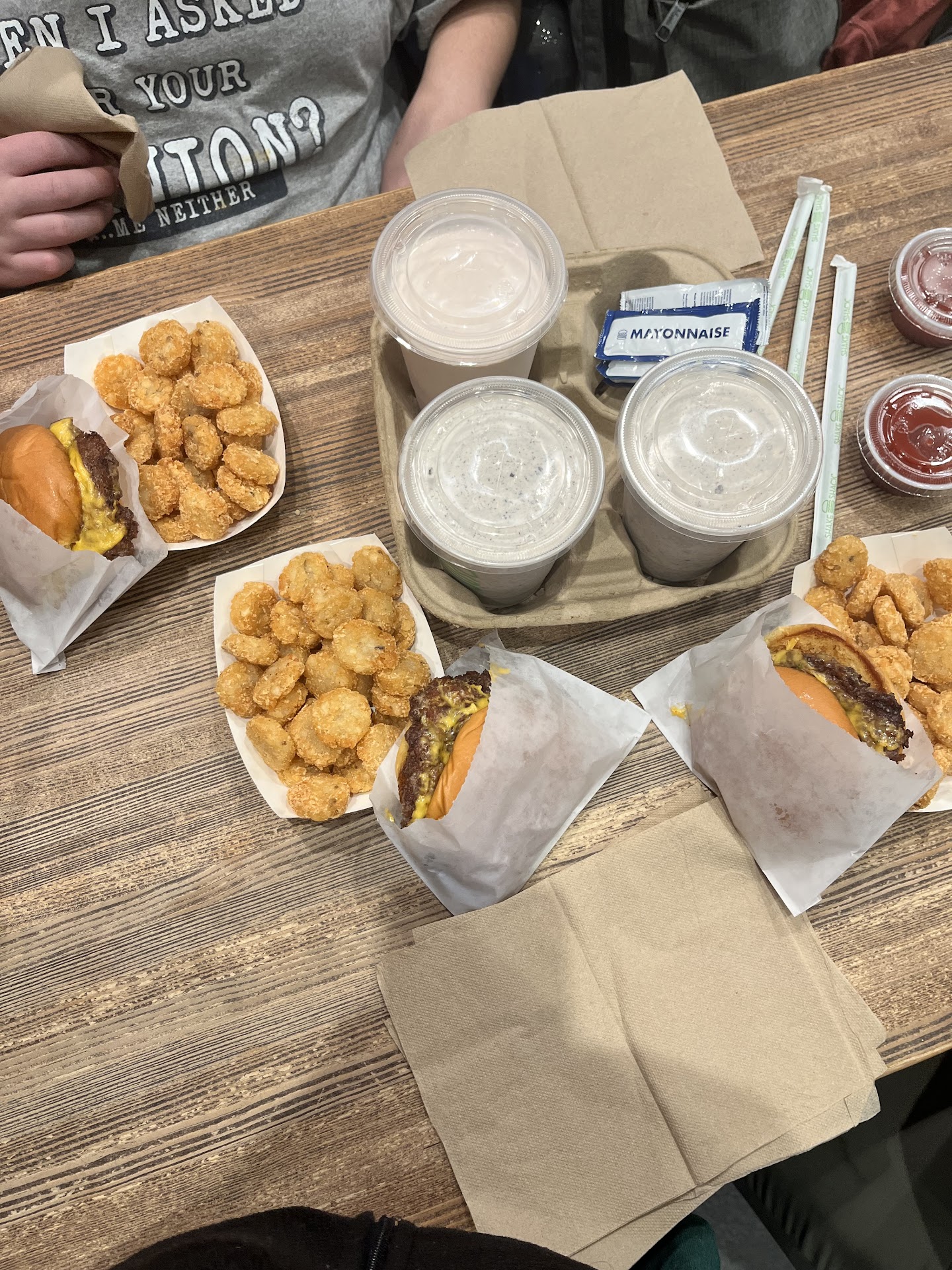 We ordered a Shack Burger, a Smoke Burger, two Bacon Cheese Fries, and two Coke Zeros. The price for that was over $40. (I know, it's an airport.)