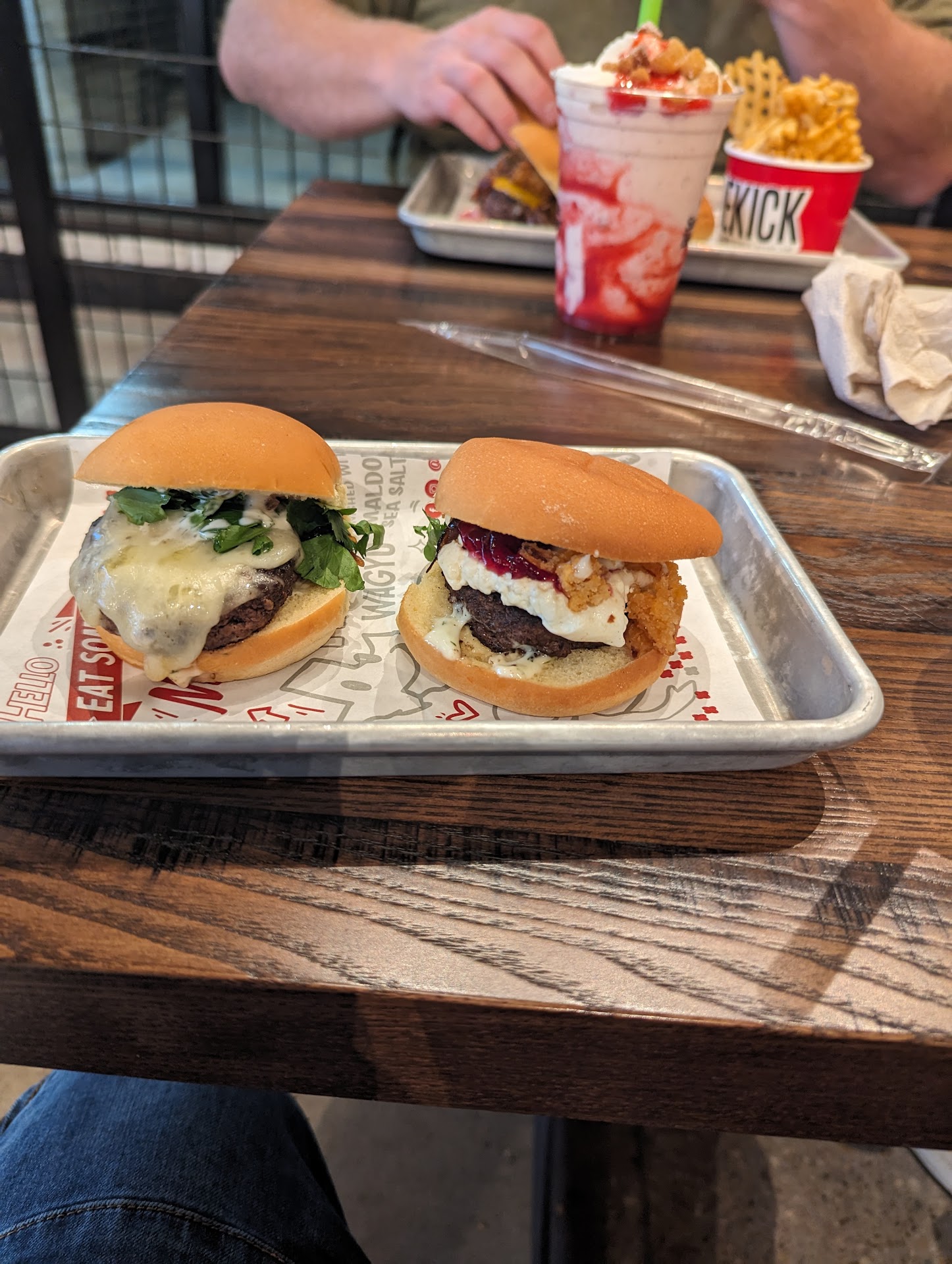 The Good: -We ordered 2 classics, 1 burnt end, 1 comeback (chicken), 1 PB&J, 1 Irishman, and 2 waffle fries. I really enjoyed the burnt ends and Irishman, but was underwhelmed by the comeback. The waffle fries were crispy and seasoned just right. -The restaurant was clean and appeared to have plenty of staff. -The vibe was chill, and the outdoor seating is a great spot to hang with friends/family and eat some sliders. -Wait time for our food was very reasonable despite how busy they were.