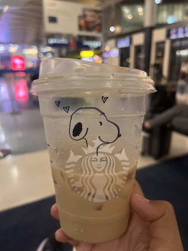 Read moreI had an early morning flight, this Starbucks was opened so I was able to get a breakfast before my travels. A barista, which I did not know who it was that doodled or get his or her name, doodle a little Snoopy with hearts on my cup, it warmed my heart because snoopy reminds me of special person, my Husband, who I miss as we live in different states at the moment. My favorite number is 3 and there were three little hearts, which I also write next to words when I journal and one of the I’s in my name. Thank you to the barista who doodled the Snoopy, reminding me that this season is much worth the move!!, a small act, even a scribble can make an impact on someone…❤️ (Snoopy has a brother named Spike, my Husbands favorite character.)