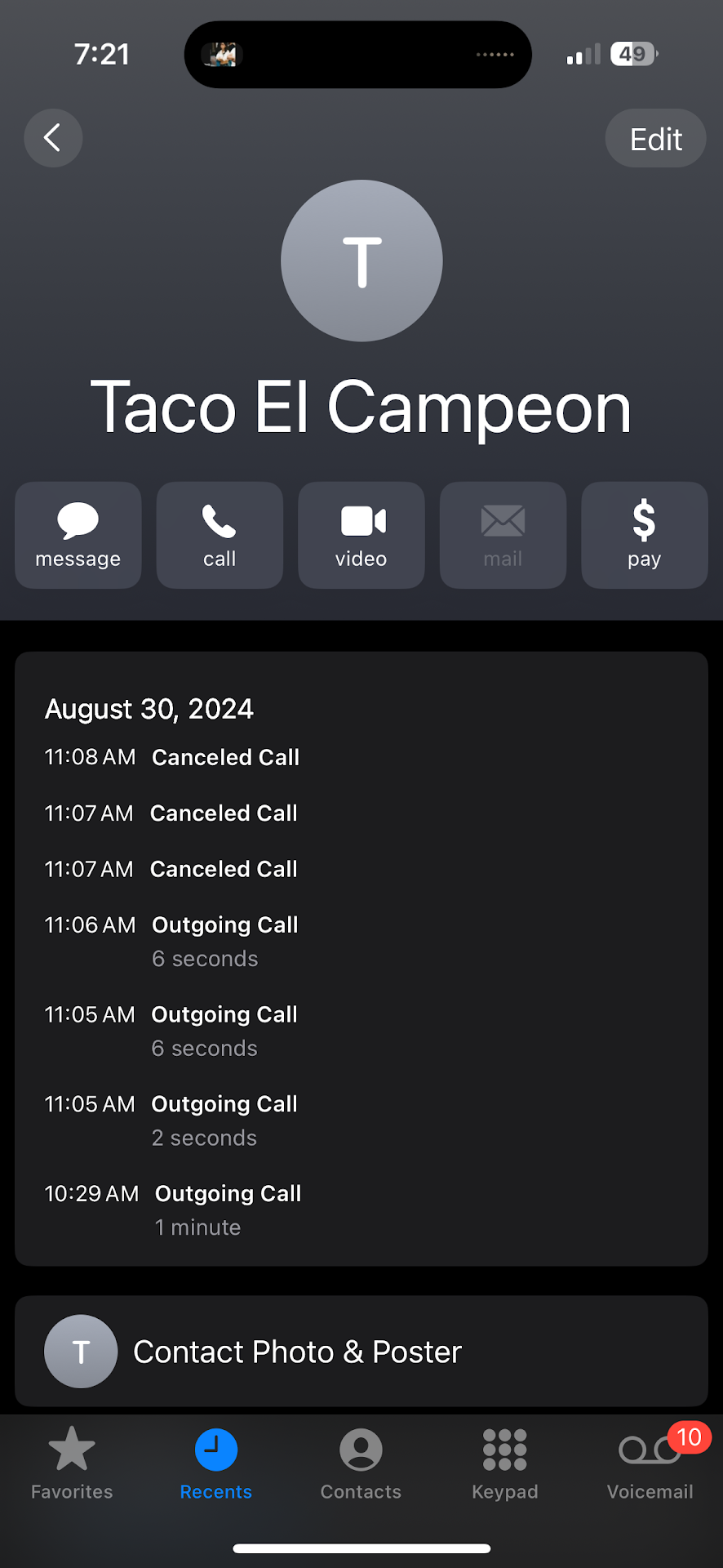 First and foremost i have given this place more then enough chances. Their service is not good at all especially their phone ethics very rude. There has been times where I have ordered online and they get my order wrong. When I call they answer and the lady who answered the phone is rude and tells me they don’t take over the phone orders, when I have called in orders multiple times. The last order I had was supposed to be two beef fajita tacos with sour team and they added cheese no sour cream had to throw order away and lost my money. I work in grapevine and live in Grand Prairie it took me till today to say something about my order because when I no rice that same day I called immediately and no one picked up and then I had no time to go after work. With this being said we brought it to their attention today after a co-worker who always orders form here told them and they refused to re-make my order told them I waited to long but when I triad calling no one responded to me very poor costumer service. The ambiance you walk in and you have worked sitting at the ya le don’t even greet you just stare until you get to the counter. I do not recommend this place what so ever. Will be the last time I order or recommend someone to try this place out. Below are proof of me calling and my order I asked for and what...