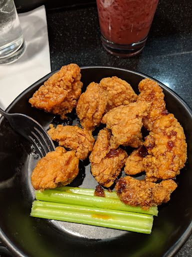 Disappointing branch of an otherwise good franchise. The host was friendly and nice, gave me an accurate estimate of how long it would take to dine (which is important to know for travellers). I sat and waited long enough for another server to notice and ask if my server had been there to help me yet. I said no so she kindly took my food and drink order. I ordered the triple berry smoothie and the BBQ wings. They came quickly but were more disappointing than my high school GPA. I have pictured my smoothie next to my water because between the two I could have found more flavor in the water. I felt they had put a couple of pieces of fruit in a blender with a ton of ice and red food coloring. Or perhaps took the remnants of a real smoothie, topped it off with ice, blended it, and called it good. This was a tasteless slushie, at best. If you're going to charge your customers over $4.00 please give them a product worth that price. The wings came with less sauce than a Justin Beiber song. There is no way these wings were tossed in sauce after being cooked, unless the cooks are completely incompetent. I asked for more sauce and my server brought it quickly, and I wasn't charged for it which is why I'm giving two stars not one. The sauce that was brought to me was gooey. After my second wing, it became difficult to dip the wings and get the sauce to stick on. I've had honey runnier than this sludge. The wings themselves were tougher than oxyclean is on stains. The breading was very hard, almost stale. As I was leaving a middle aged couple set down near me and ordered drinks. My server asked for their ID and they literally asked her 'are you serious'. The server then told them that a coworker of hers had been fired yesterday for not ID'ing a forty year old customer. This is ridiculous policy! I've worked security at bars and I've been a server so I understand the risk to both you and your business if you don't ID but anyone who looks older than thirty should not have to dig for their ID, even at an airport where it should be more accessible already. Overall, not a good experience. Worst $19...