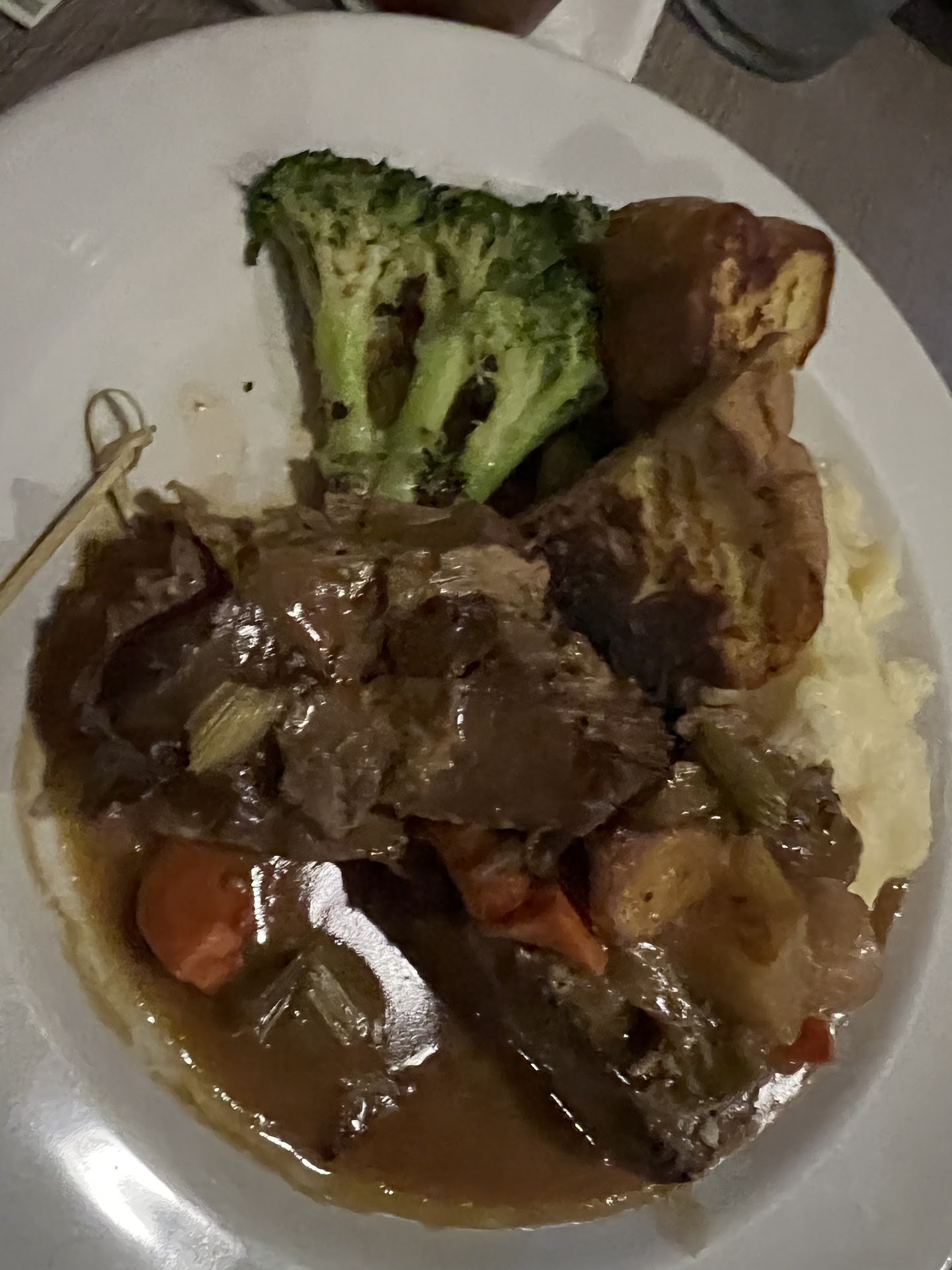 One of the previous images posted from another reviewer shows a standalone building. It’s in a hotel now. Don’t let that stop you tho. Our food was wonderful and we will be coming back. I had the pot roast (hard to find that offered anywhere, at least in my experience) and it was very good. My wife had the ribeye and she very much liked her choice as well. Our server seemed to be running the whole restaurant including the bar. Nothing was late in arriving. Oh, the Bloody Mary was also very good. She was VERY professional, always checked on us and did refills at the right time and was friendly to customers. It seemed a bit dark in the restaurant. Not a problem really, just noticed. Overall a definite place...