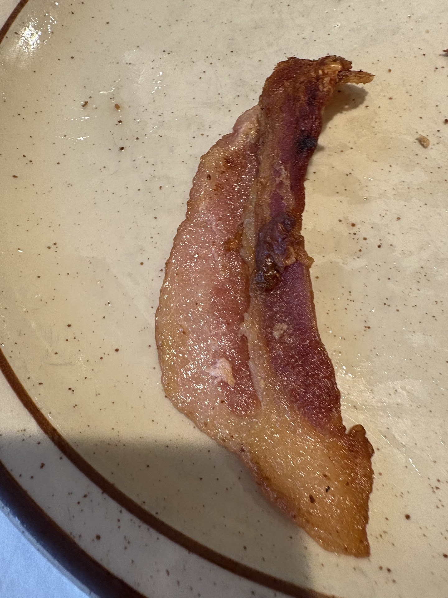 I tried scraping the sour cream off the top of the omelet, but was unable to get enough of it off to be sure whether the odd taste was the sour cream or not. Otherwise the omelet was fluffy, the ham was delicious and it could have been really good if not for the odd taste.