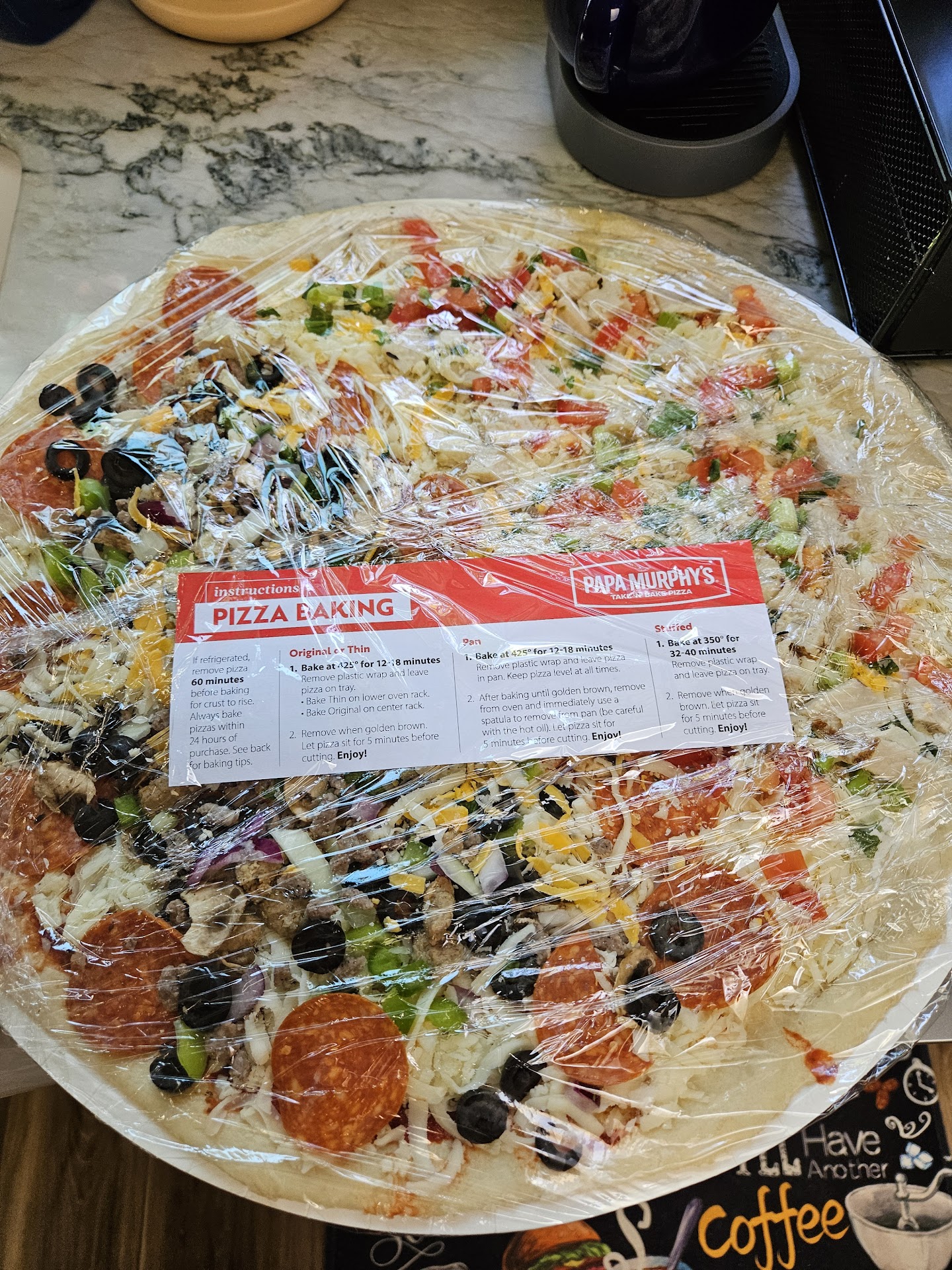 This great review is deserved by the employees and the food they make; tonight they were obviously understaffed and overwhelmed, and several customers were very rude even though the three workers on shift obviously were working as hard as they could and were saying they were so sorry anyone was upset or inconvenienced. It was the kind of thing that can make good employees walk off the job. I hope it's a one-time thing and management doesn't that kind of thing happen to them again. I only waited half an hour and my pizza looks great, just like I ordered, so I think some of the angry people were exaggerating their wait time, but it was not a good situation for the workers. I stepped into one bully and told him I wasn't going to let him harass the girl about his pizza order anymore. He had made her cry. I'm glad he backed down instead of taking me on; he was just not upset enough to be that foolish I guess. What a scene. I hope the ownership takes note and appreciates how hard their employees struggle to make them look good and make them money. I'm sure I couldn't afford my used pickup driving, 1200sq ft renting, city lot living lifestyle on Papa Murphy's wages. Here's to the hard working people doing the hard...