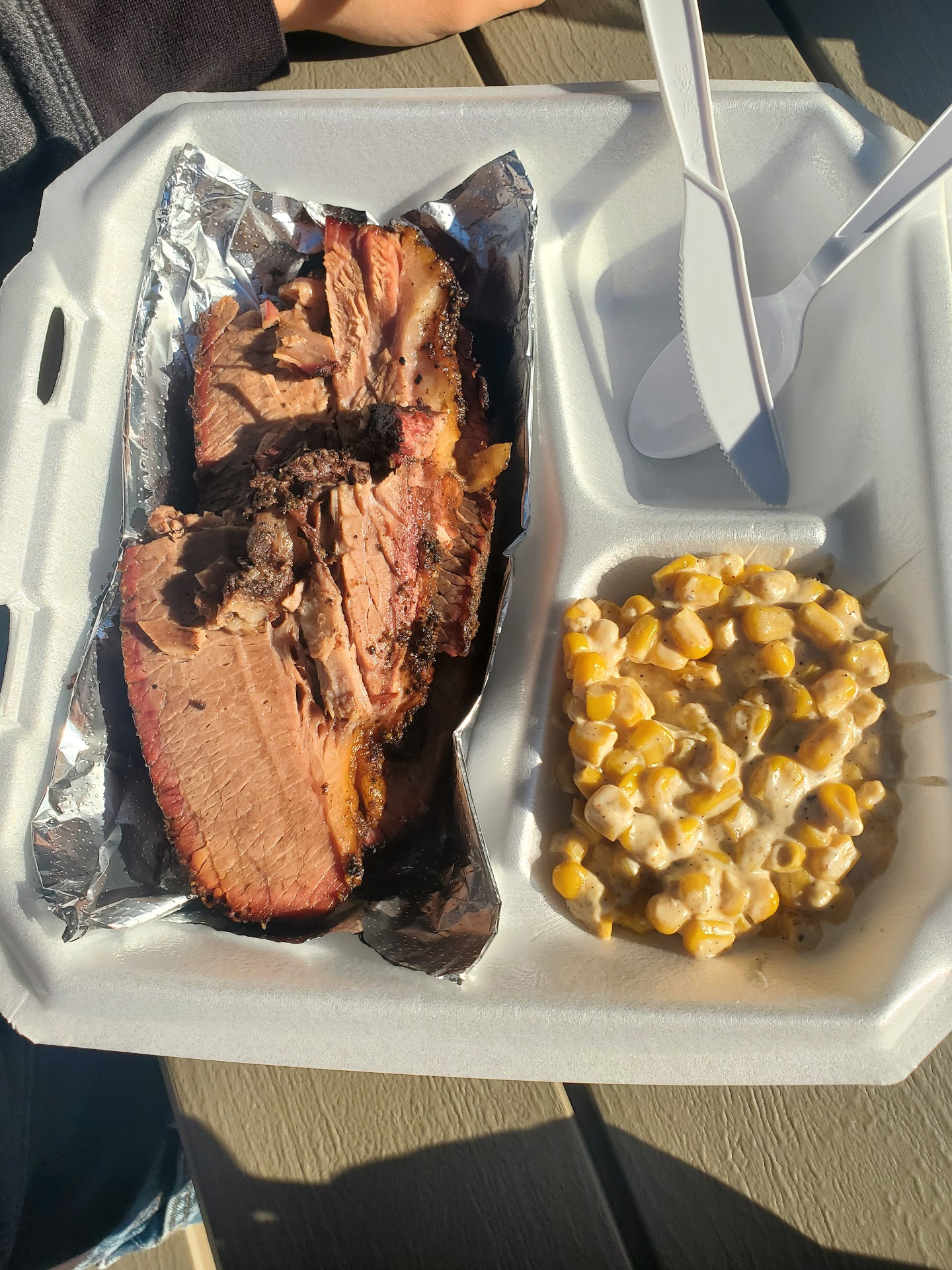 This was our 2nd trip to Bearded Chops and everything we've had has been amazing. This time we all got brisket with sides of Mac & cheese and Mexican street corn. It was absolutely delicious. On our first trip we tried the smoked chicken (leg quarters), pork belly burnt ends and ribs. The chicken has been my favorite so far and my husband's pick would be the burnt ends. We'd absolutely have everything we've tried again though. Everything just falls off the bone. My 4yo says the street corn is so good he wants to leave it out for Santa instead of cookies 😂 Right now they are open on...